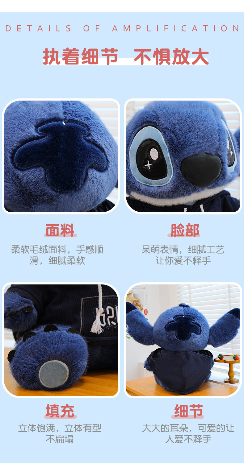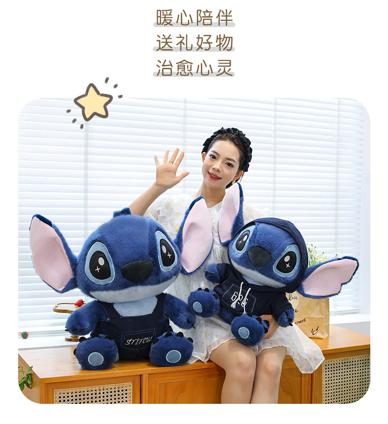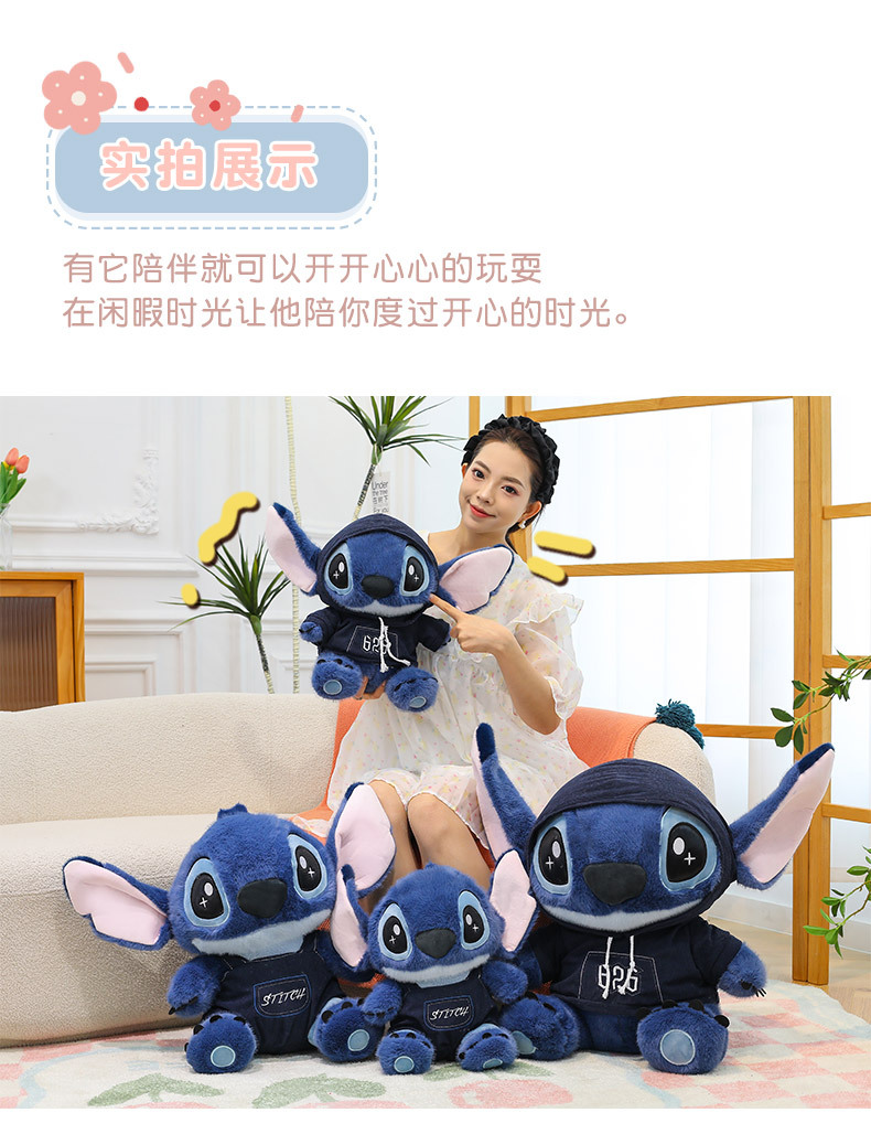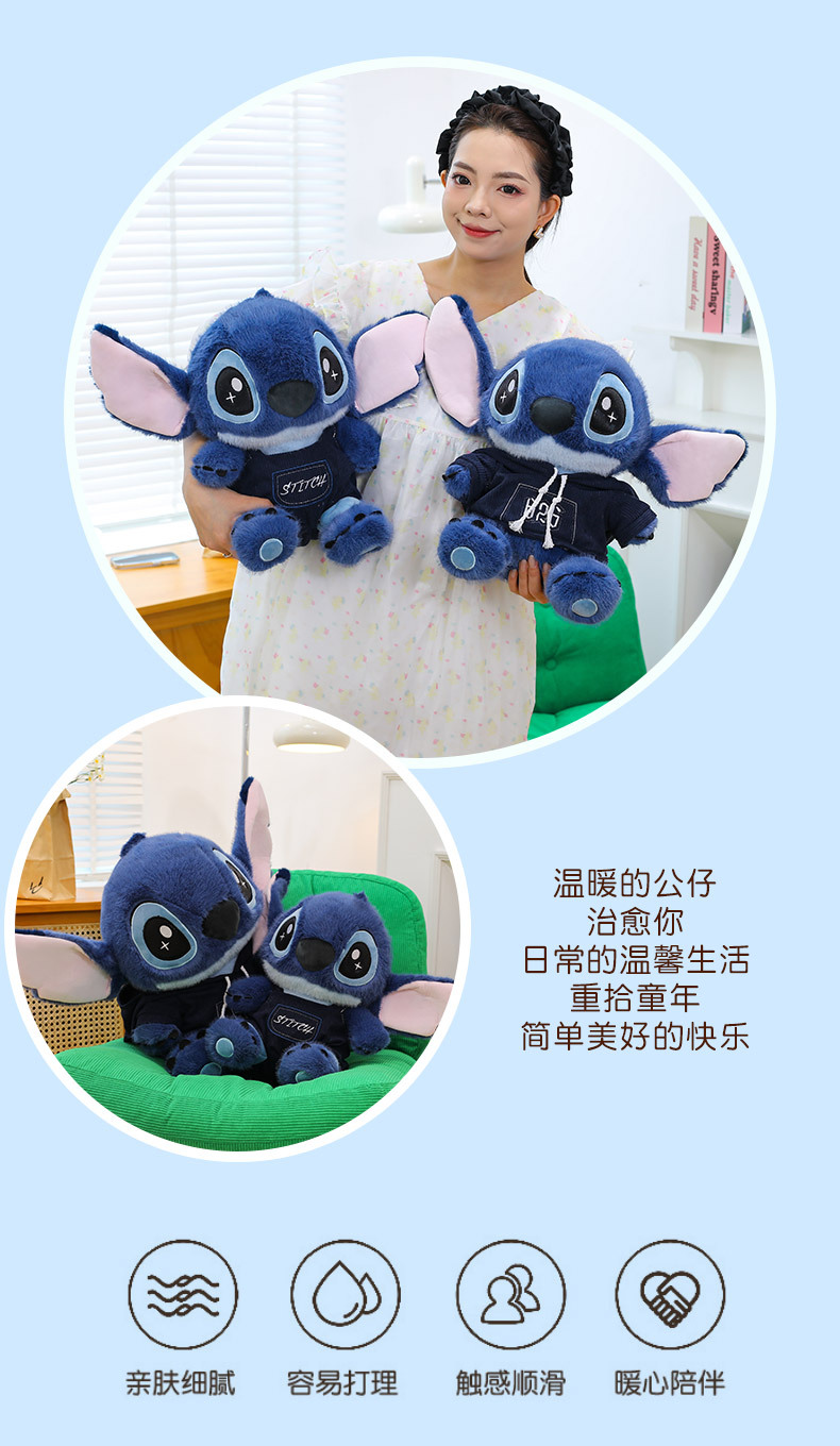 스티치 작업복 봉제 인형 귀여운 스티치 스웨트 셔츠 인형 여성 국경 간 인기 생일 선물 도매스토어 가기