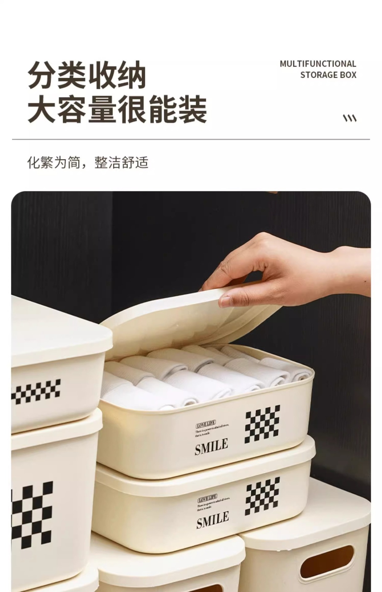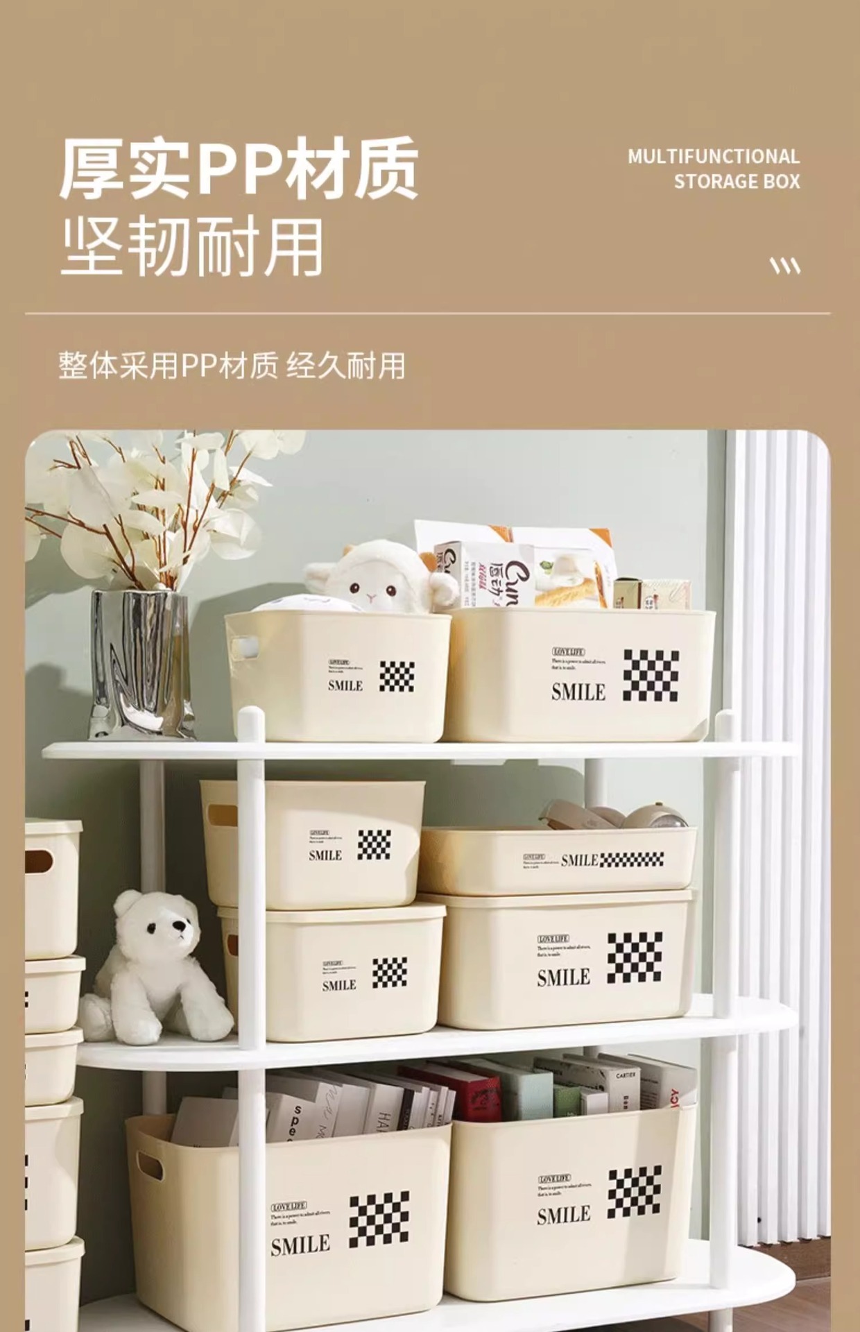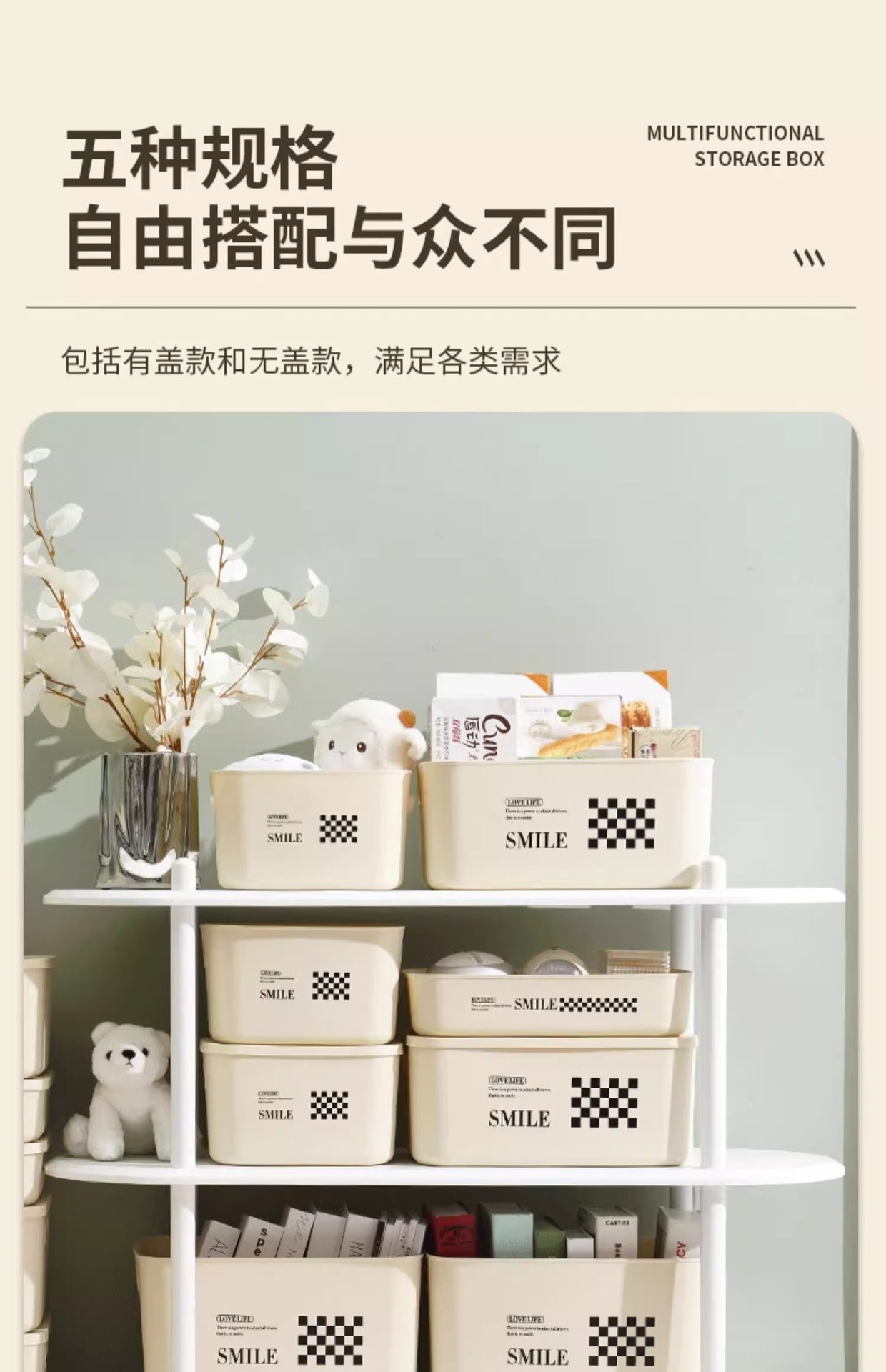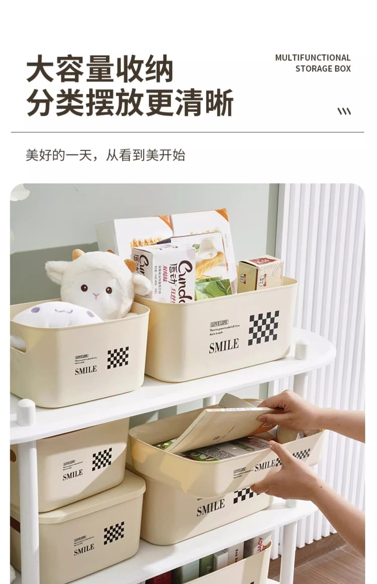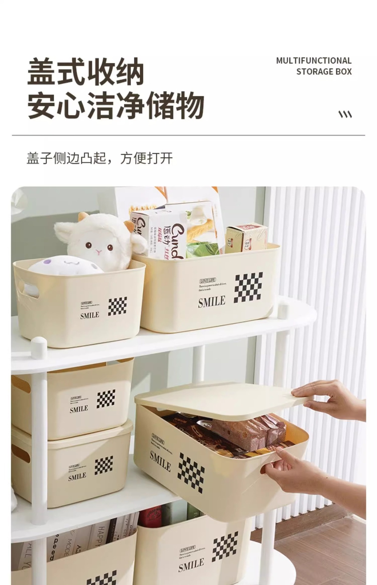 보관 상자 데스크탑 화장품 스낵 플라스틱 보관 랙 가정용 잡화 보관 바구니 직사각형 뚜껑이있는 보관 상자스토어 가기