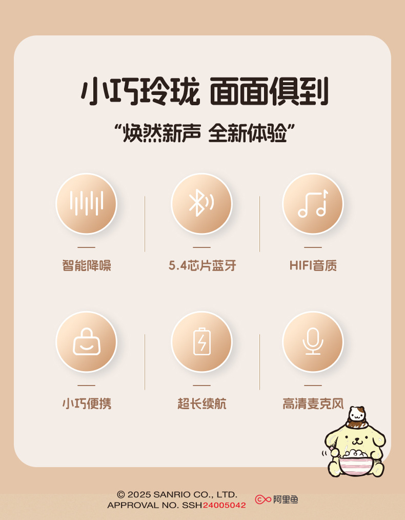 정품 공인 Sanrio 무선 블루투스 헤드셋 만화 귀여운 개인 모델 소음 감소 고품질 긴 배터리 수명 헤드셋