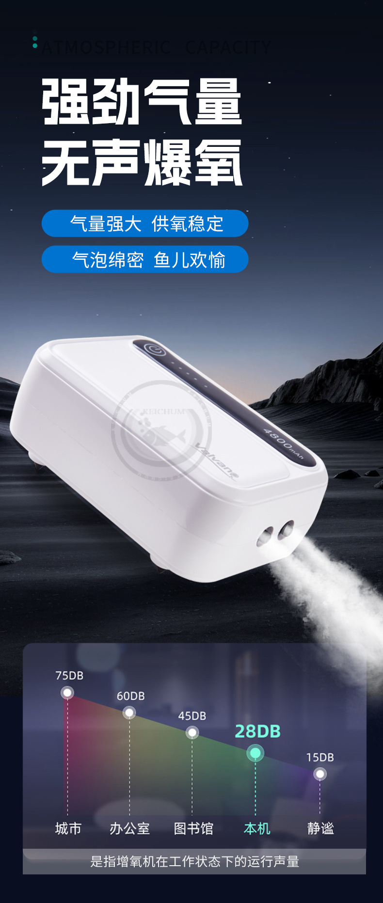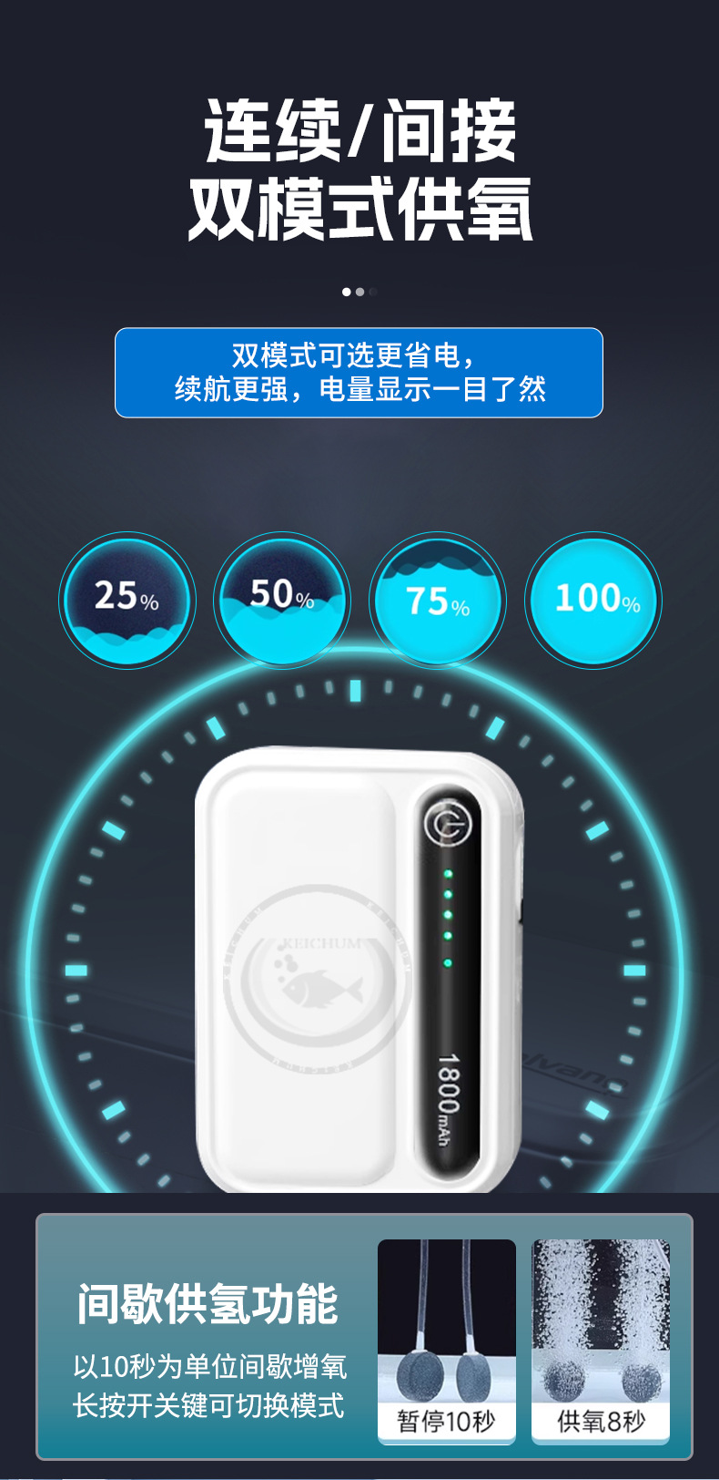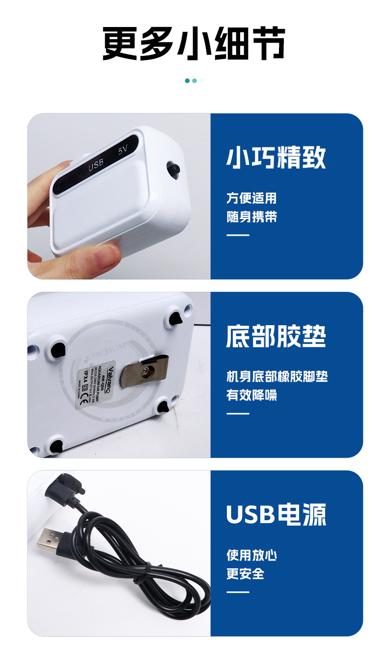 물고기 양식용 소형 초저소음 수조 산소 펌프 실외 이중 목적 AC 및 DC 충전 긴 수명 휴대용 산소 펌프스토어 가기