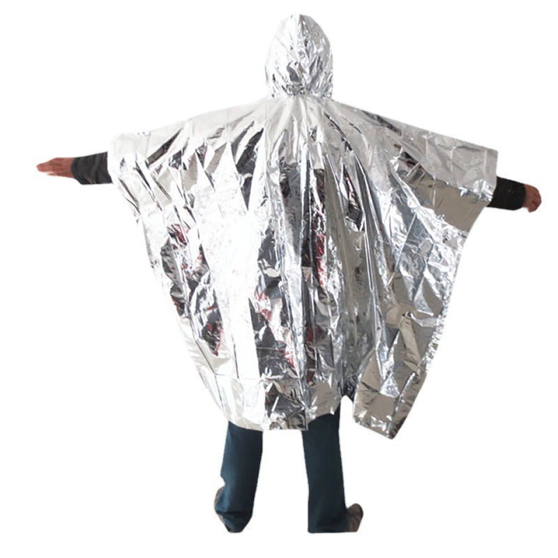 야외 생존을 위한 휴대용 알루미늄 호일 비옷, 저체온증 방지, 방한 및 동결 방지, 야외 캠핑 및 등산 비상 단열 구급 담요