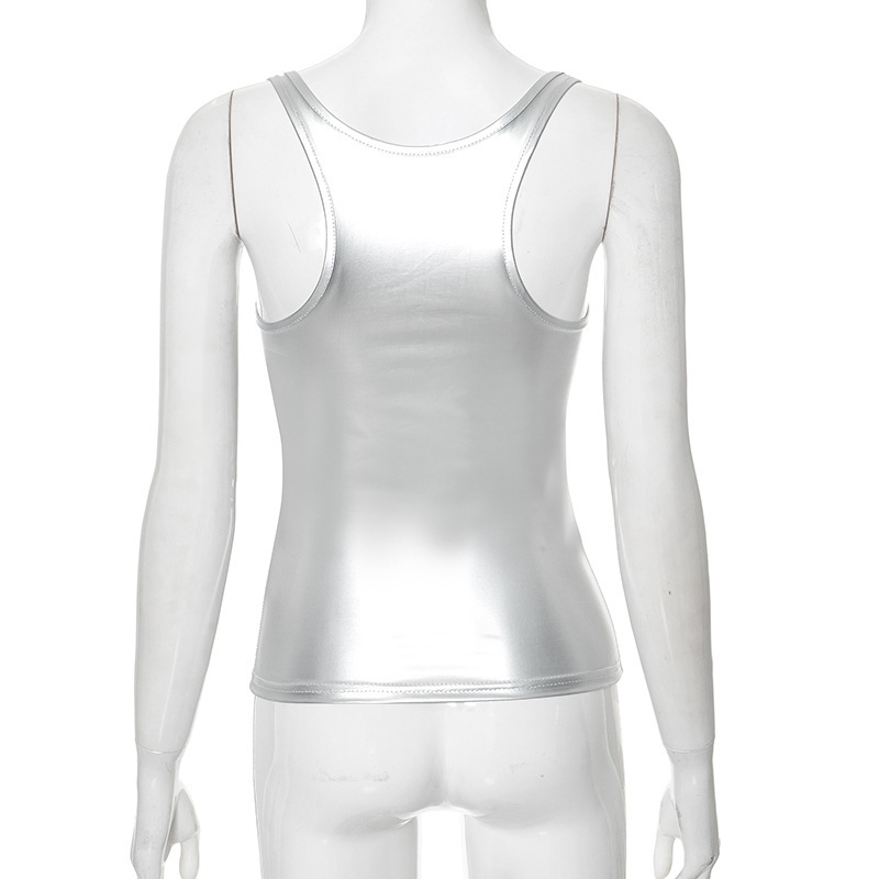 유럽과 미국의 국경 간 여성 의류 2025 여름 아마존 새로운 솔리드 컬러 스퀘어 넥 민소매 섹시한 조끼 티셔츠 탑 여성