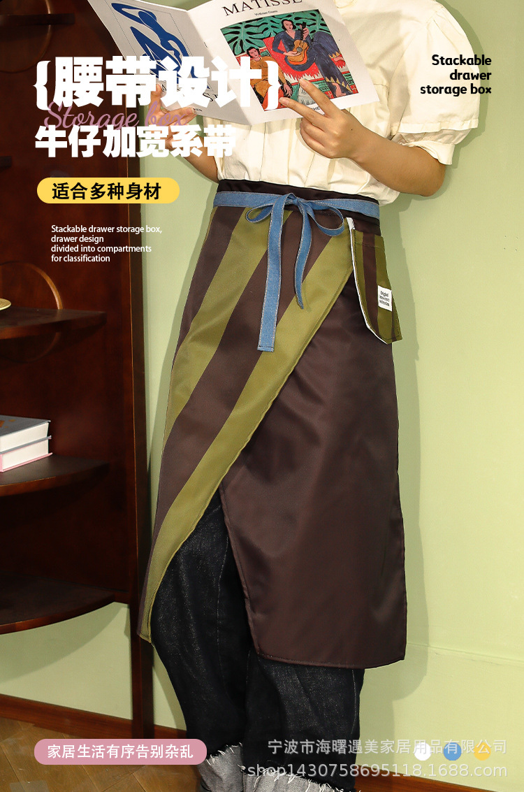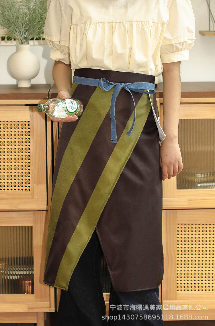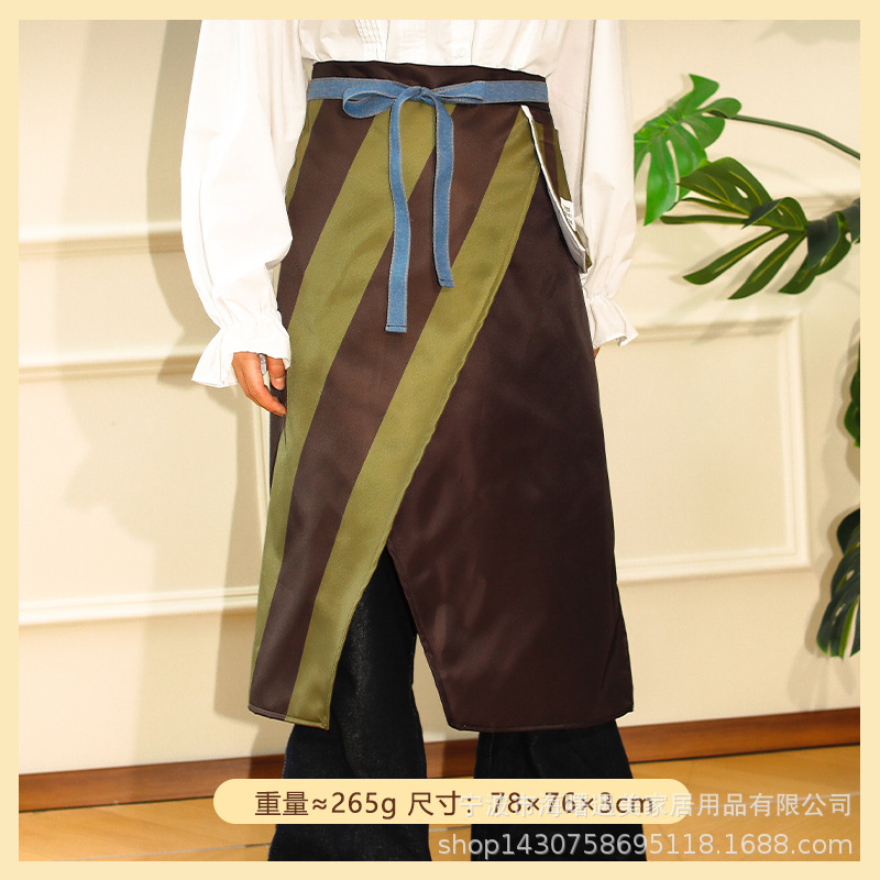 • 노란색과 갈색의 두꺼운 줄무늬 앞치마