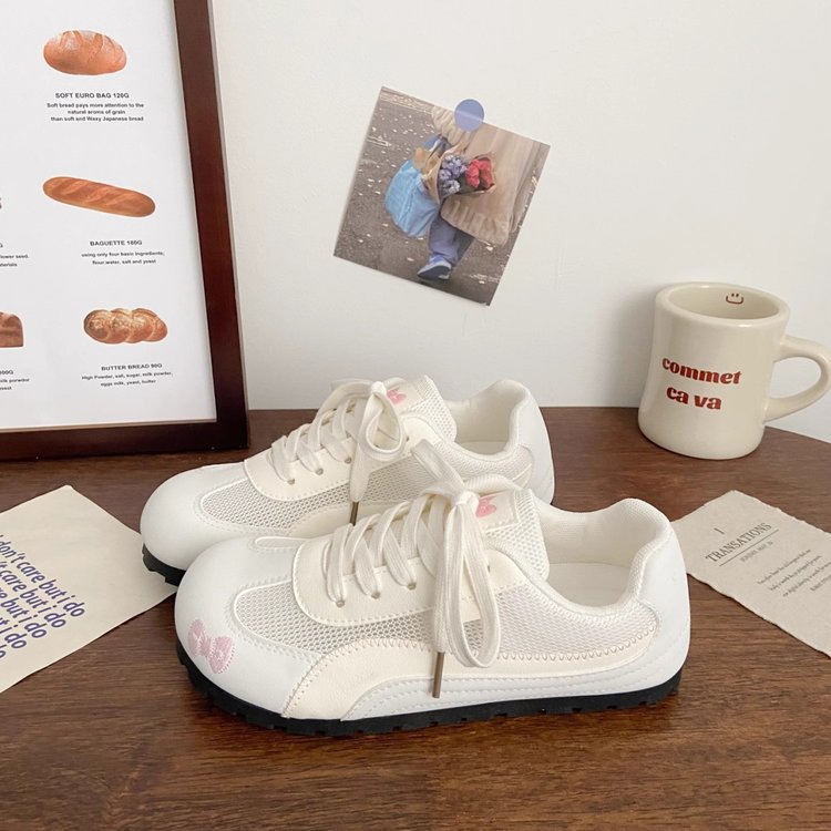 여성 발레를위한 핑크 도덕 훈련 운동화 2025 여름 새로운 세련된 틈새 디자인 학생 메쉬 통기성 흰색 신발스토어 가기