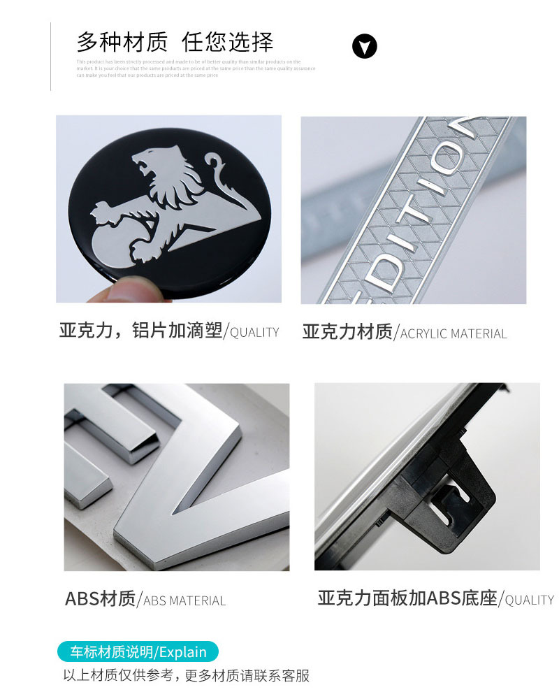 材质:此为ABS电镀工艺,字体光滑圆润,电镀镜面效果,采用专用背胶,图片为案例图片,如需要其他样式可联系客服咨询!