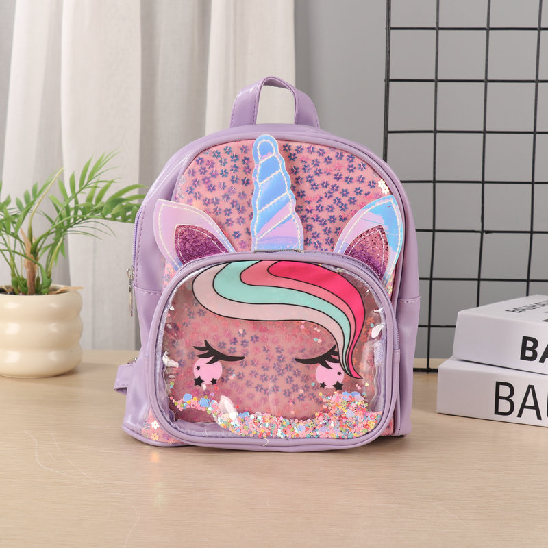 새로운 만화풍 귀여운 어린이 백팩 유니콘 패션 PVC 반짝이 트렌디 백팩 pu 소녀용