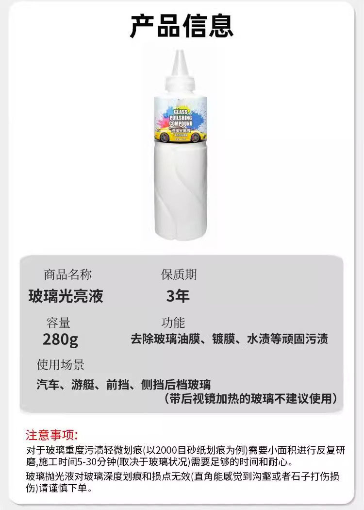 국경 간 자동차 유리 광택 액체 중간 오일 필름 코팅 클리너 오일 필름 페이스트 유리 제거 백색 안개 연마 액체스토어 가기