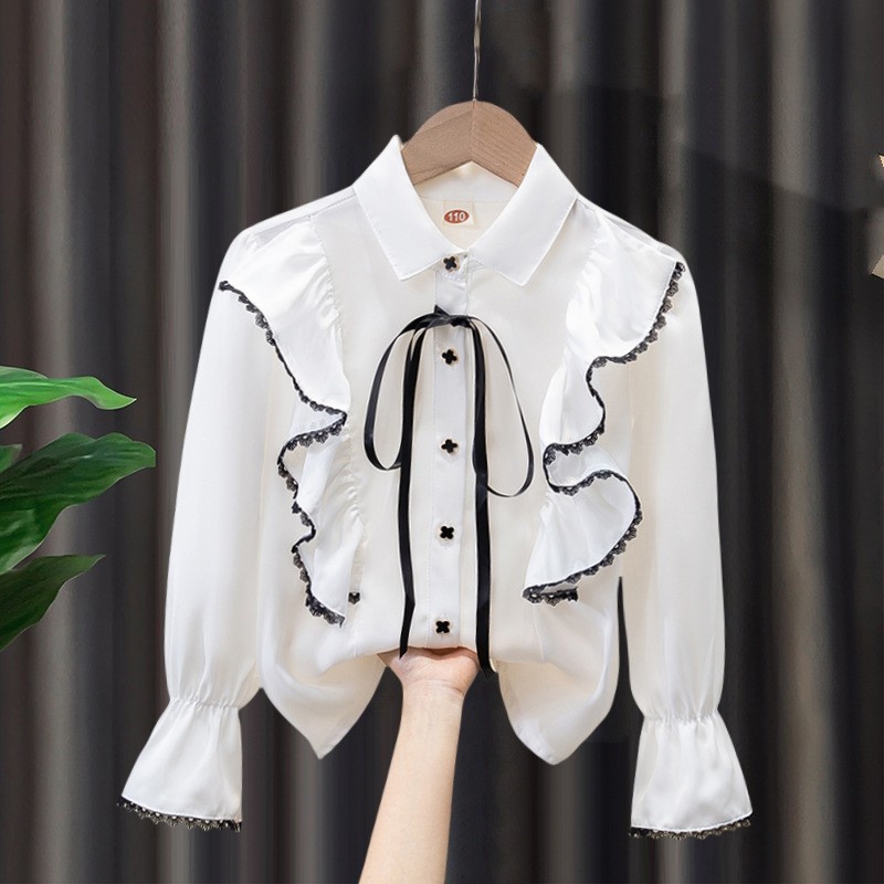 아동용 셔츠 흰색 긴팔 봄, 가을 교복 공연복 레이스 여학생 교복 새로운 여자 봄, 가을 셔츠