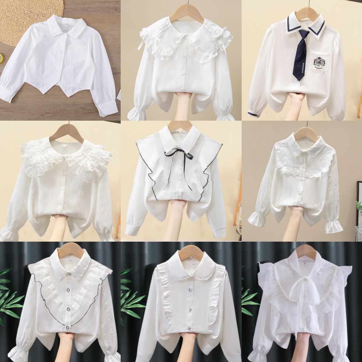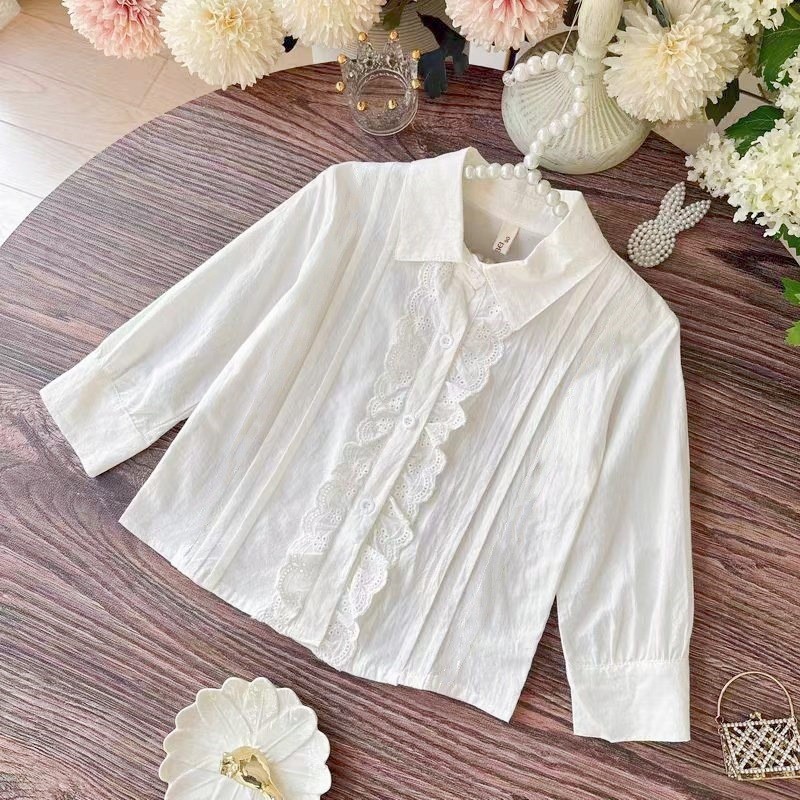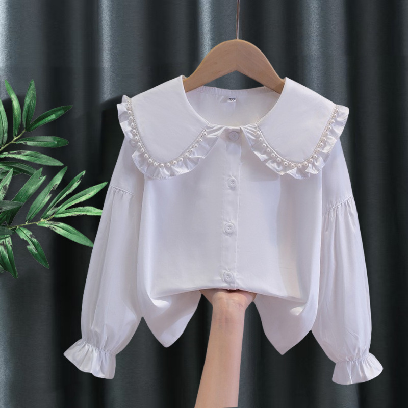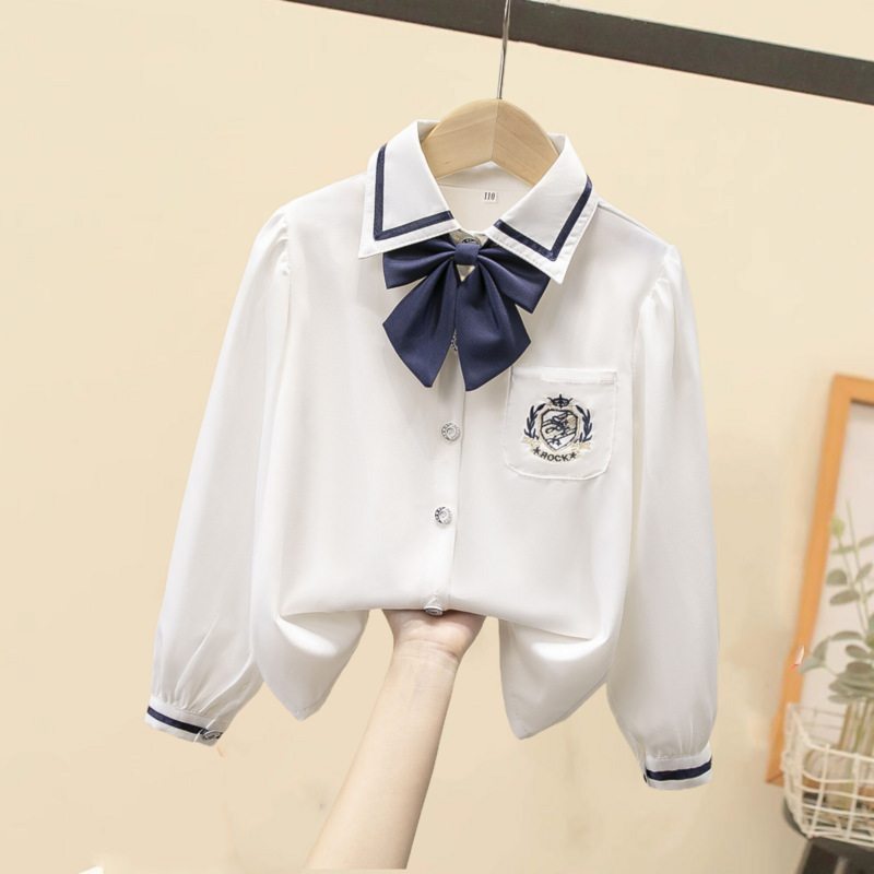 아동용 셔츠 흰색 긴팔 봄, 가을 교복 공연복 레이스 여학생 교복 새로운 여자 봄, 가을 셔츠스토어 가기