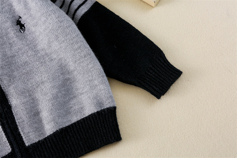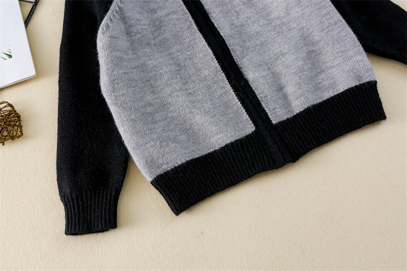 소년 카디건 스웨터 2025 가을, 겨울 새로운 어린이 컬러 블록 스웨터 다목적 강아지 자수 한국 스타일 재킷