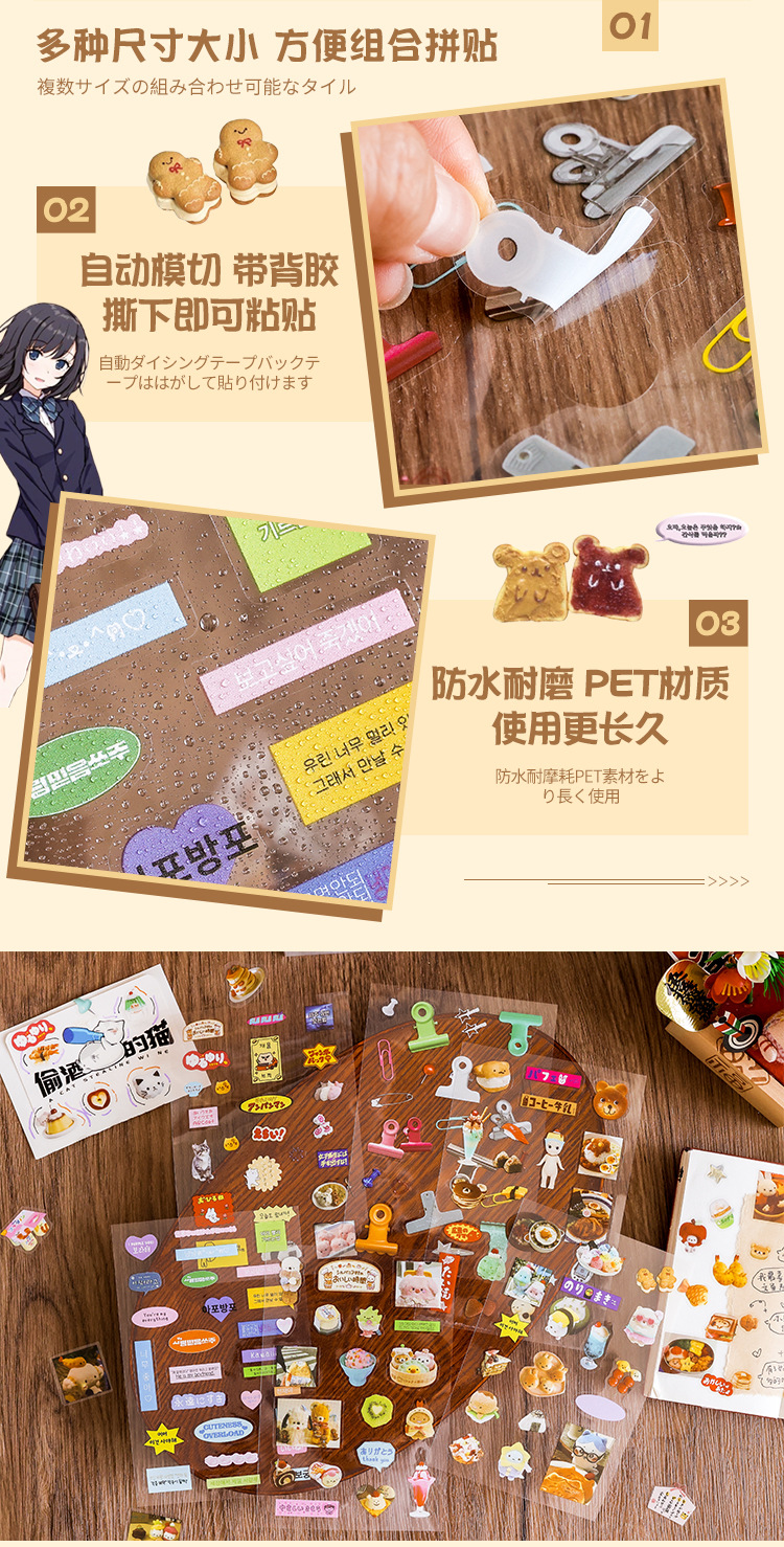 Little Story 일본 만화 애완 동물 방수 diy 핸드북 장식 일기 재료 장식 만화 워터 컵 스티커