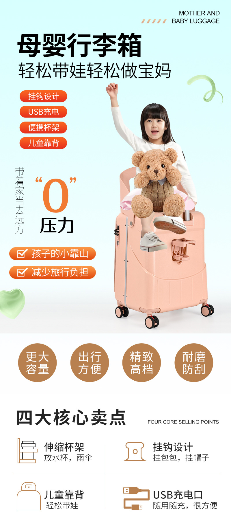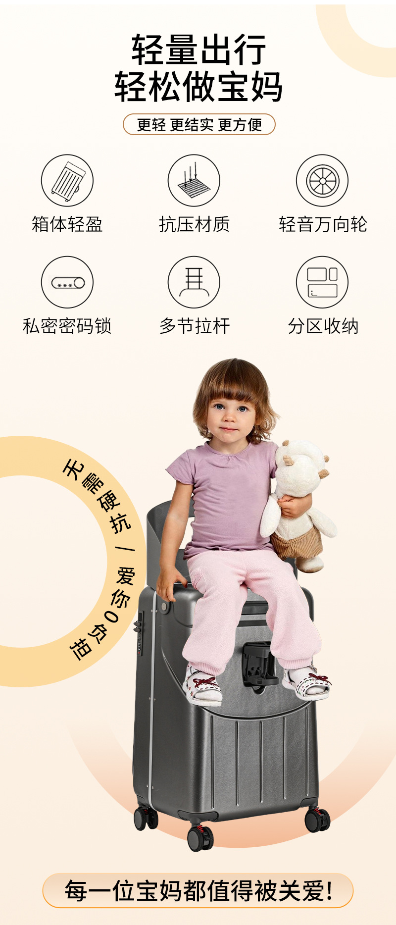2025년 신형 엄마용 탑승 케이스, 부모-자식 트롤리 케이스, 어린이용 여행가방 20inch 남녀 여행가방스토어 가기