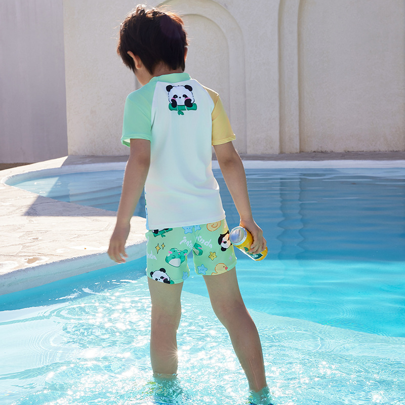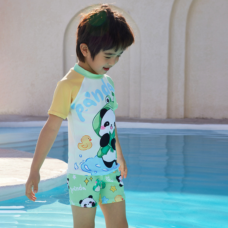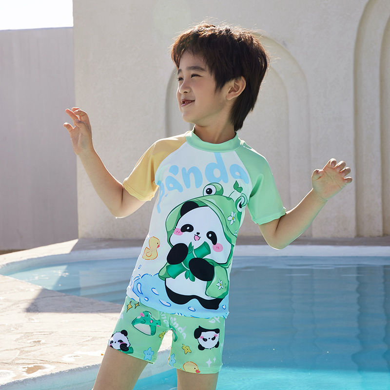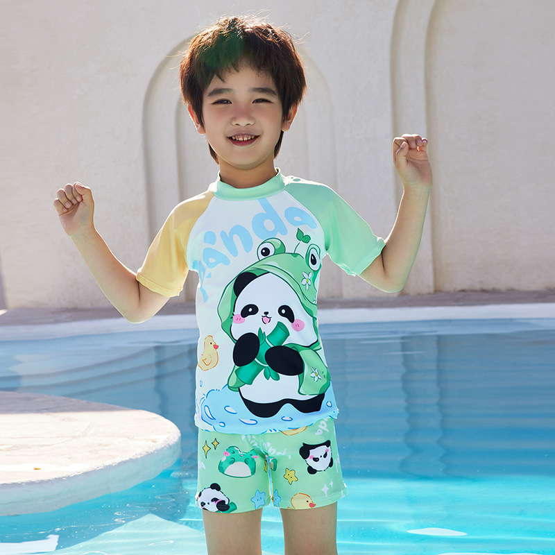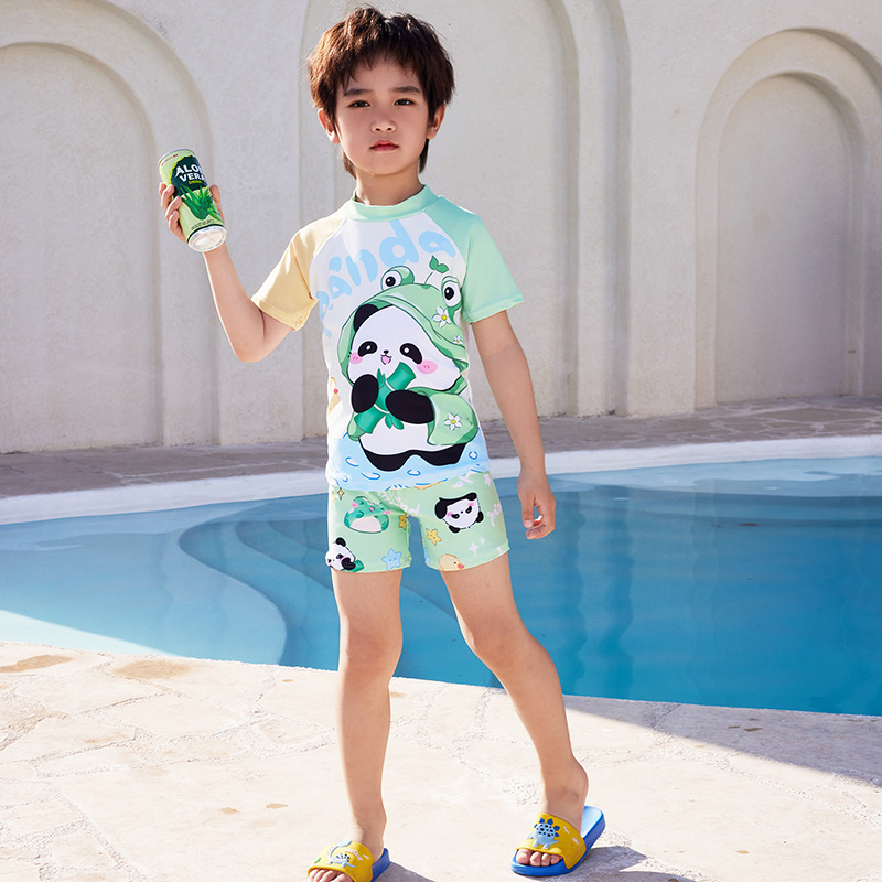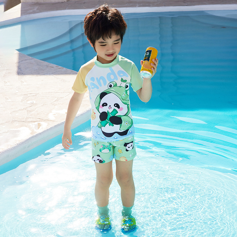 어린이 수영복 소년과 어린이 만화 팬더 원피스 반팔 속건성 편안한 수영복 수영 학습 세트