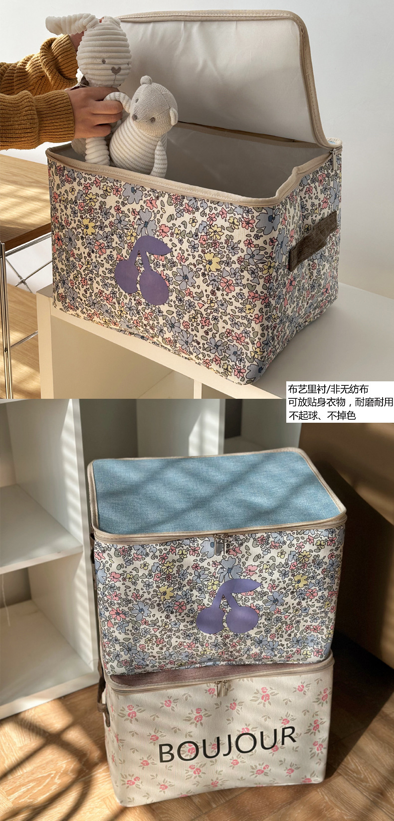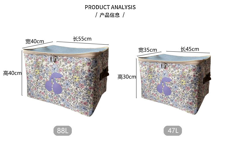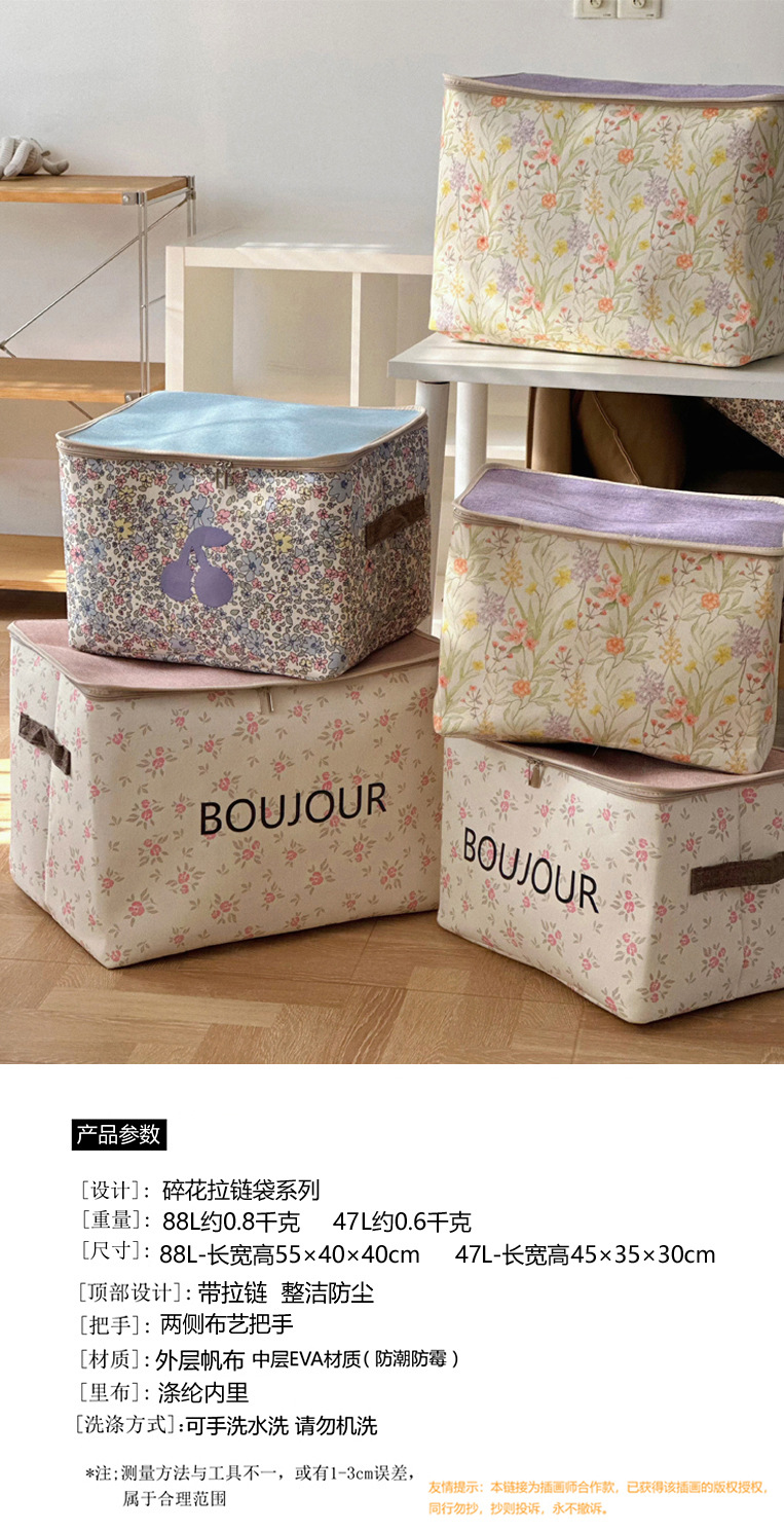 두꺼운 패브릭 방진 지퍼 가방 홈 기숙사 옷장 의류 보관 상자 접이식 자동차 이동 보관 바구니