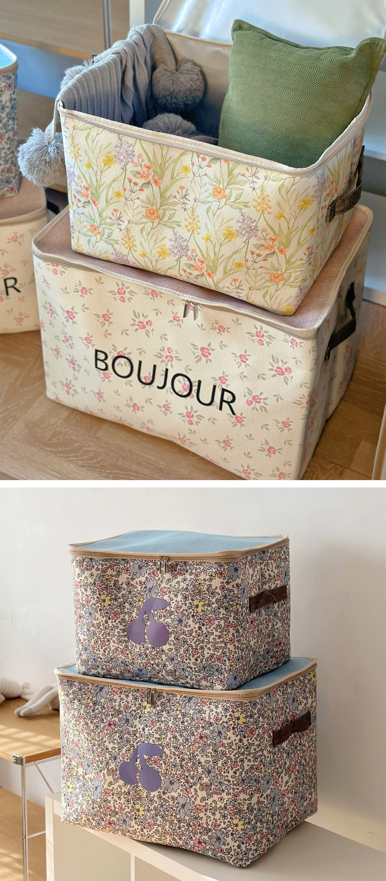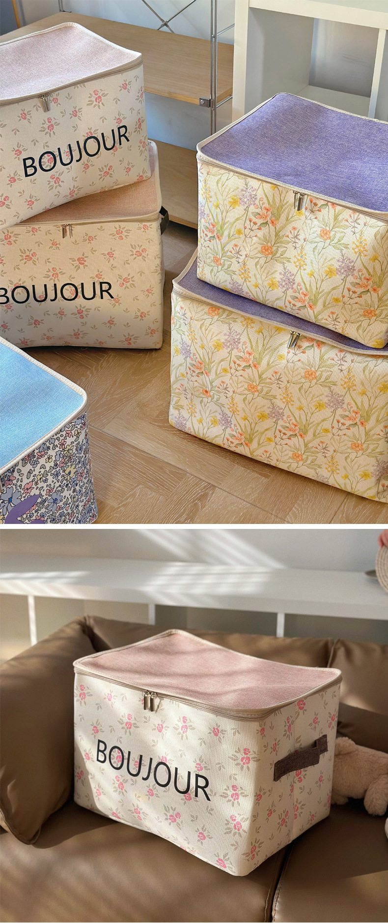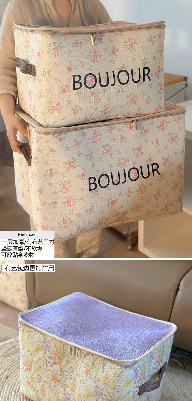 두꺼운 패브릭 방진 지퍼 가방 홈 기숙사 옷장 의류 보관 상자 접이식 자동차 이동 보관 바구니