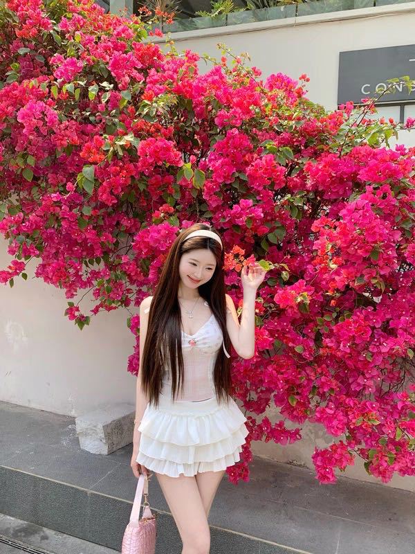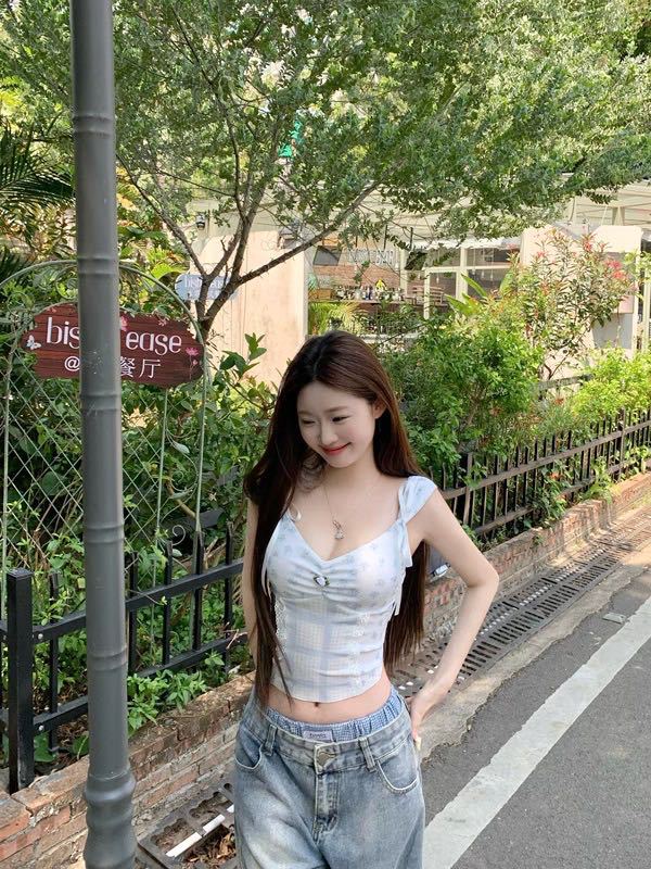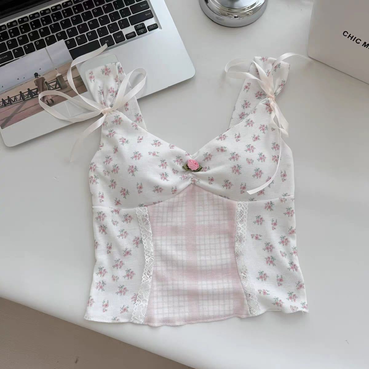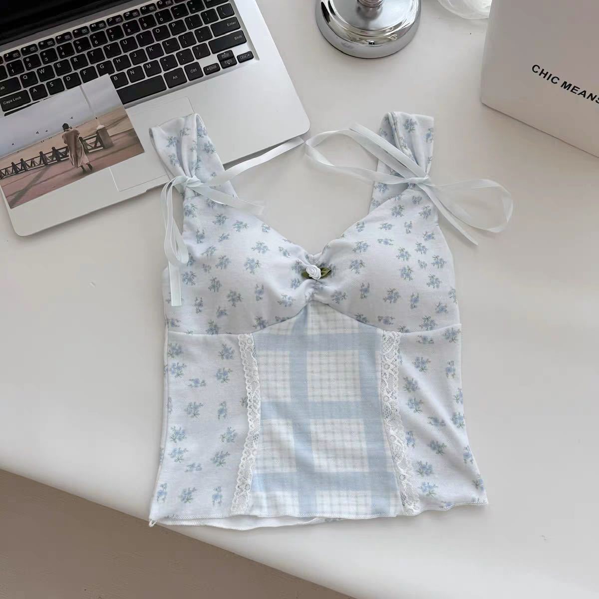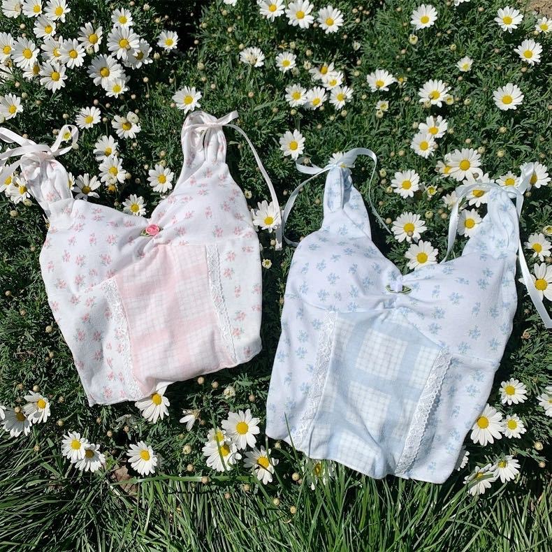 L3308을 한국어로 번역해 주세요. # 프렌치 레트로 목가적 꽃무늬 디자인 작은 꽃무늬 짧은 레이스 여름 슬림핏 가슴 패드와 슬링 포함스토어 가기