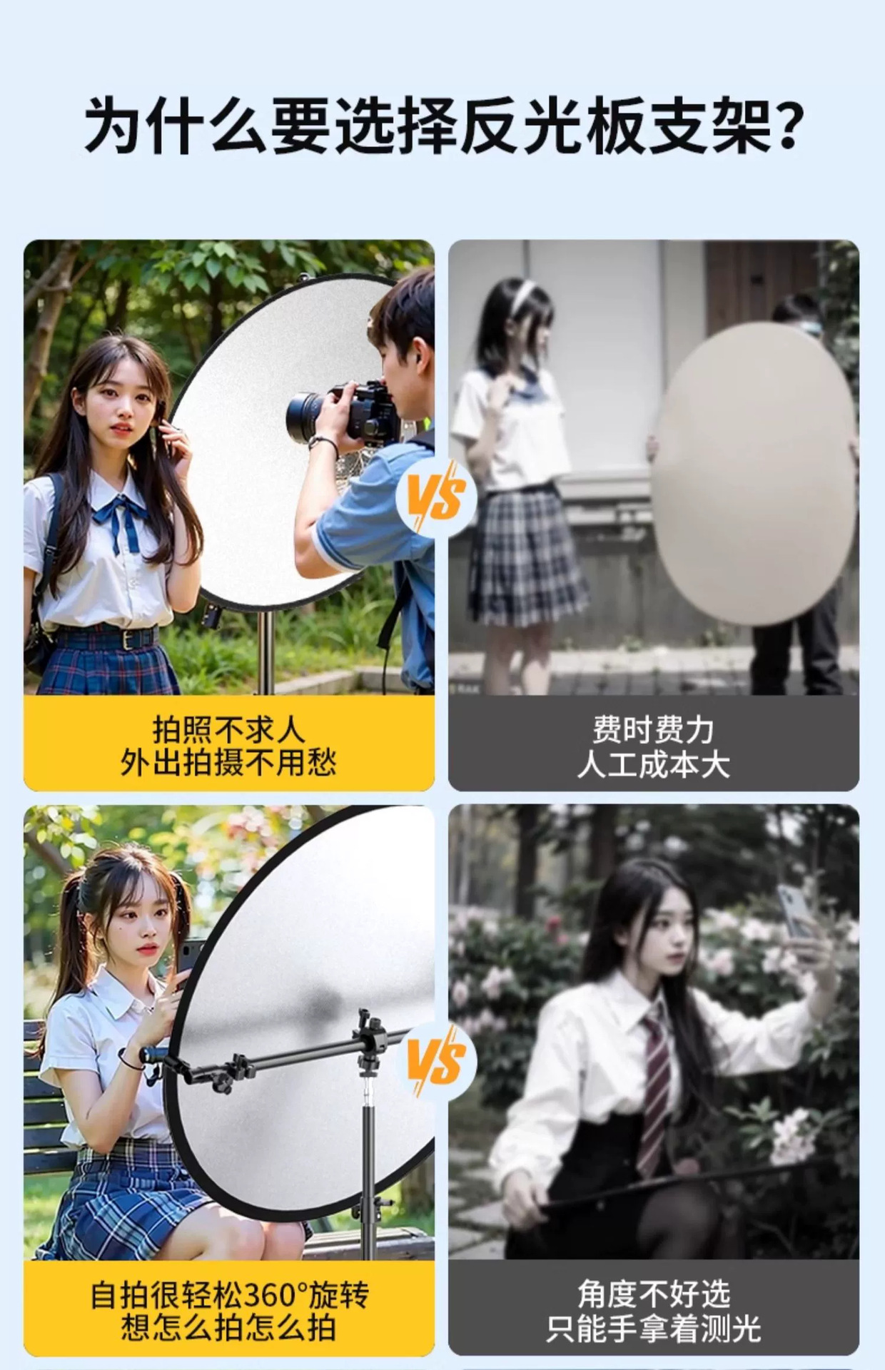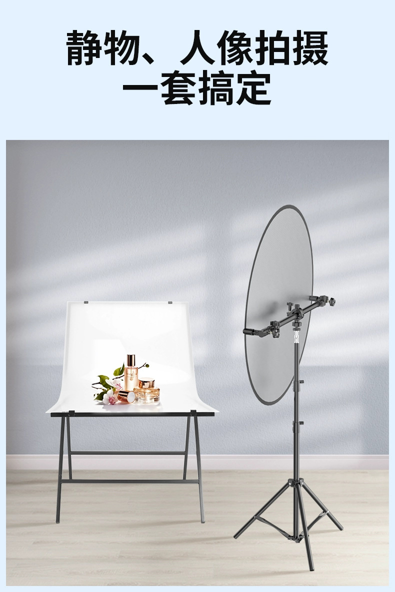 스탠드형 반사판, 라이브 사진 촬영, 수직 소프트 라이트 조명 패널, 실외 크로스 암 차광 반사 삼각대