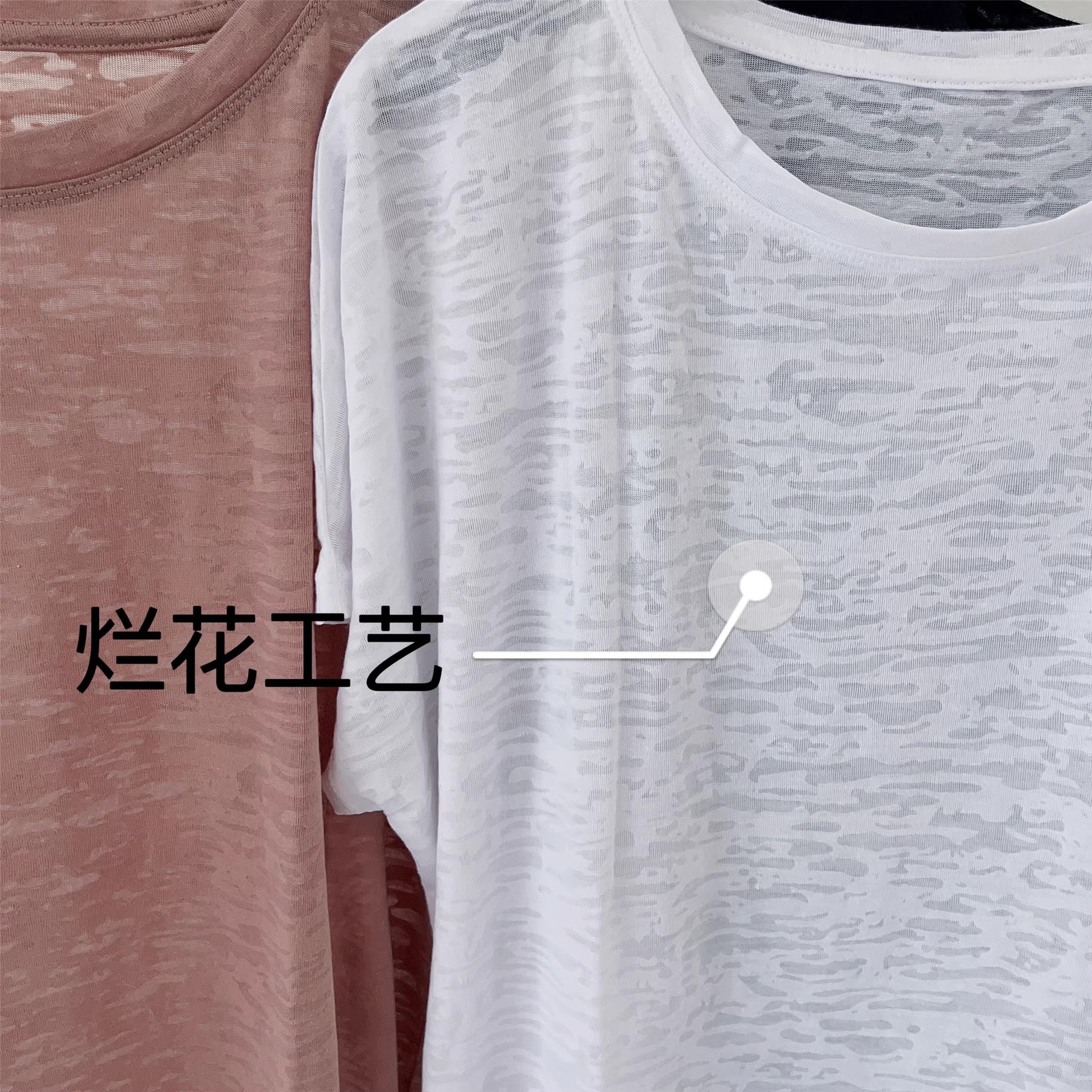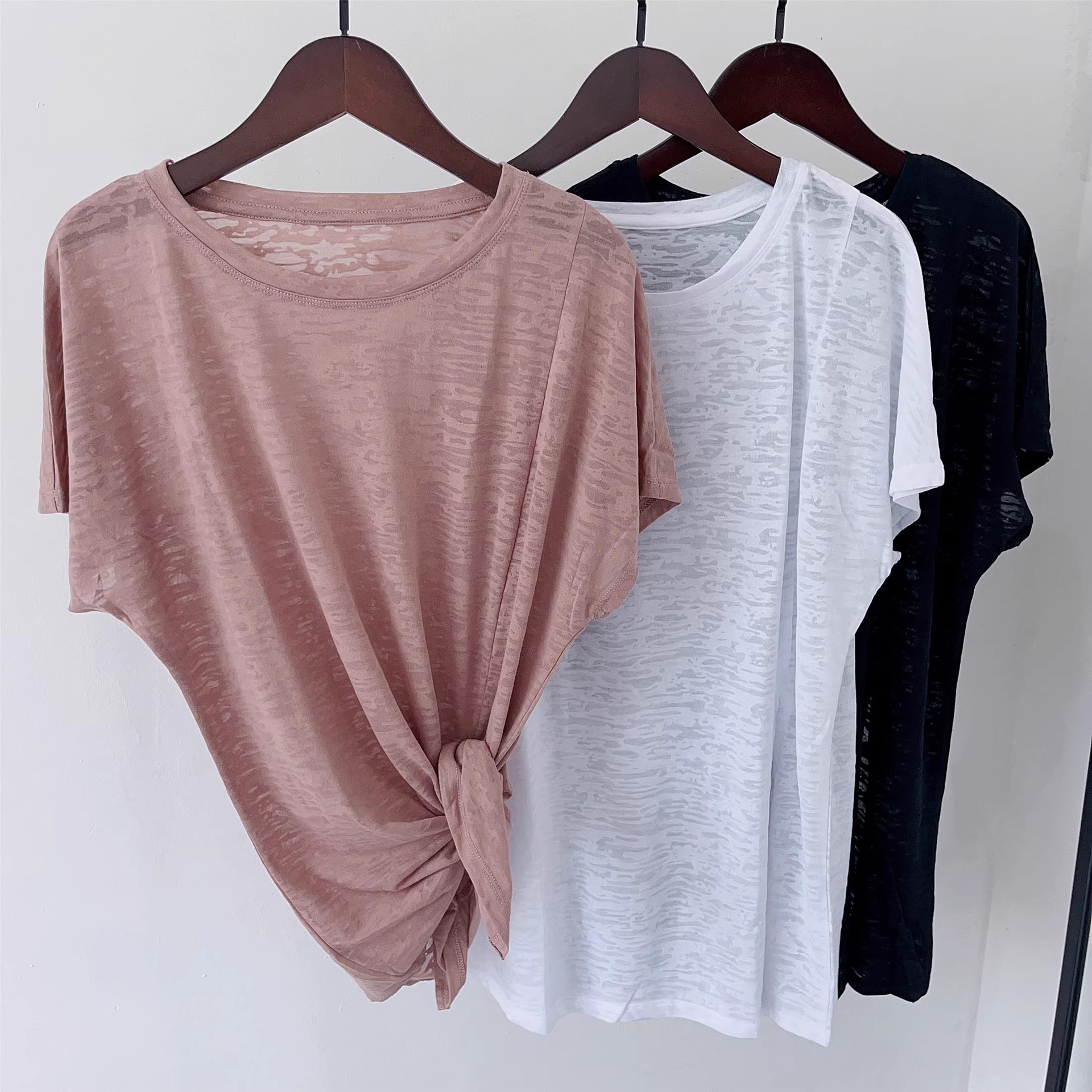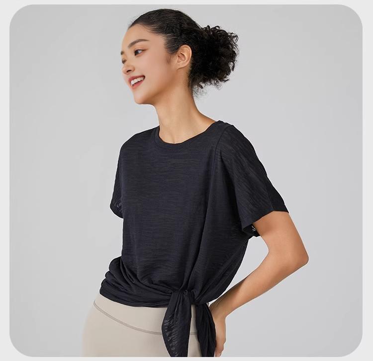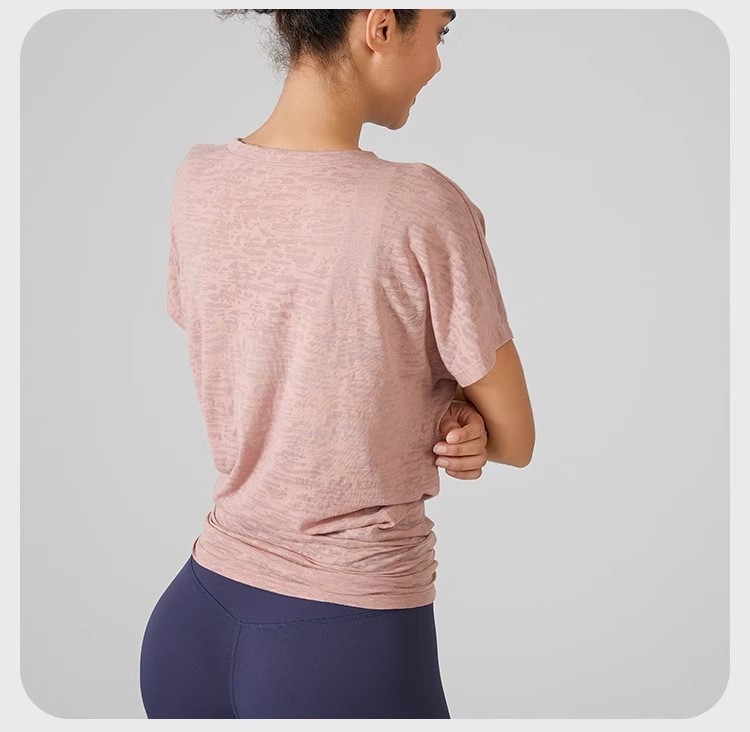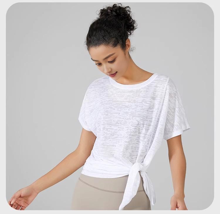 엉덩이를 덮는 중간 길이의 가볍고 통기성이 뛰어난 여성용 요가 커버업, 슬릿 반팔, 루즈한 런닝 피트니스 스포츠 탑