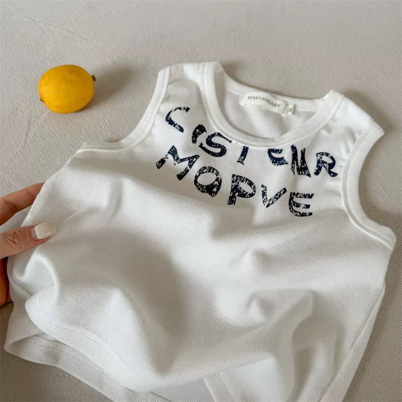 아동용 I자형 조끼 얇은 2025 여름 신작 소년 알파벳 조끼 유행 아기 민소매 티셔츠 여성 패션스토어 가기