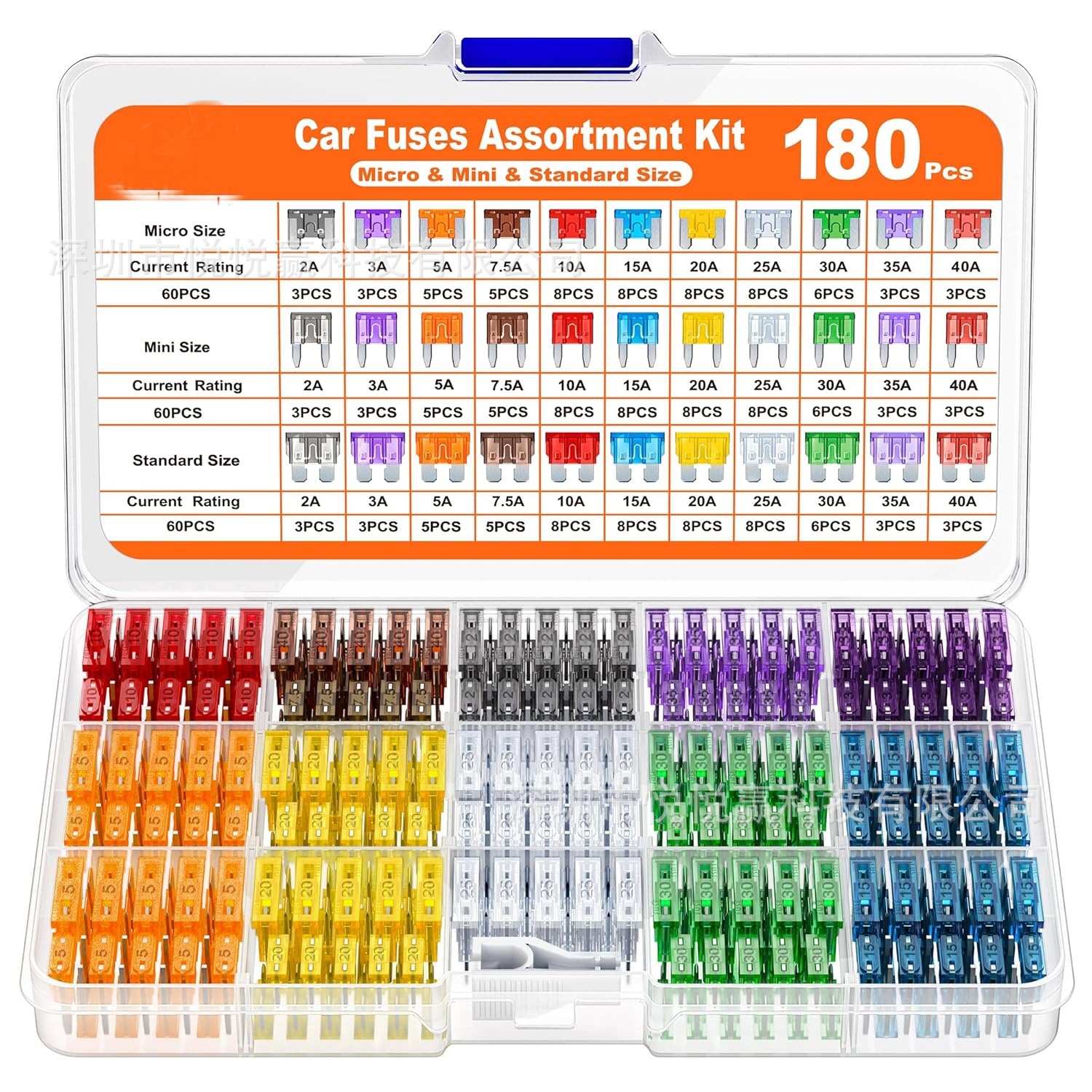 180PCS 새로운 자동차 퓨즈 박스형 소형 퓨즈 중형 퓨즈 미니 아연 퓨즈