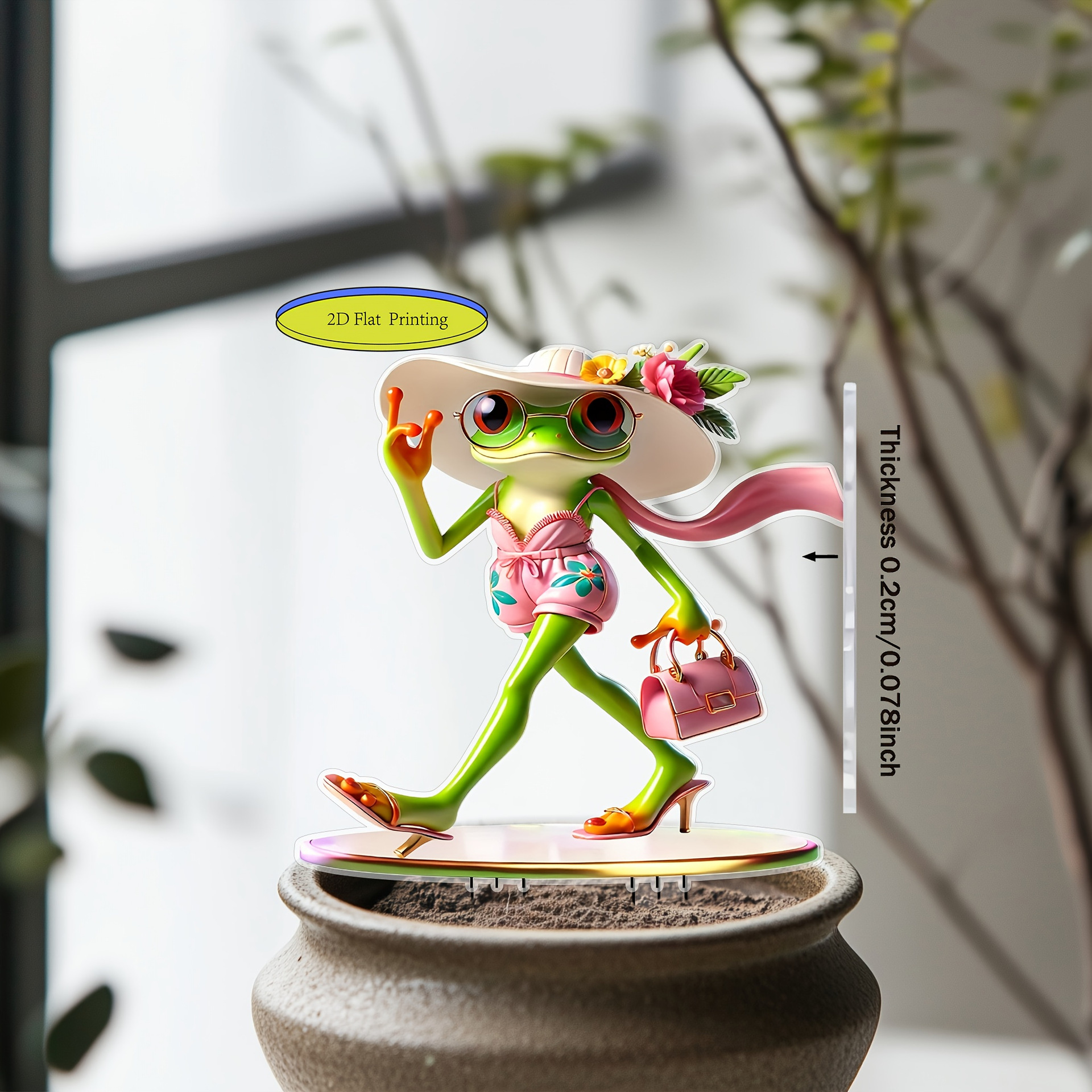 1개 2D 보헤미안 개구리 정원 말뚝 - 핑크색 방수 아크릴 야외 장식스토어 가기
