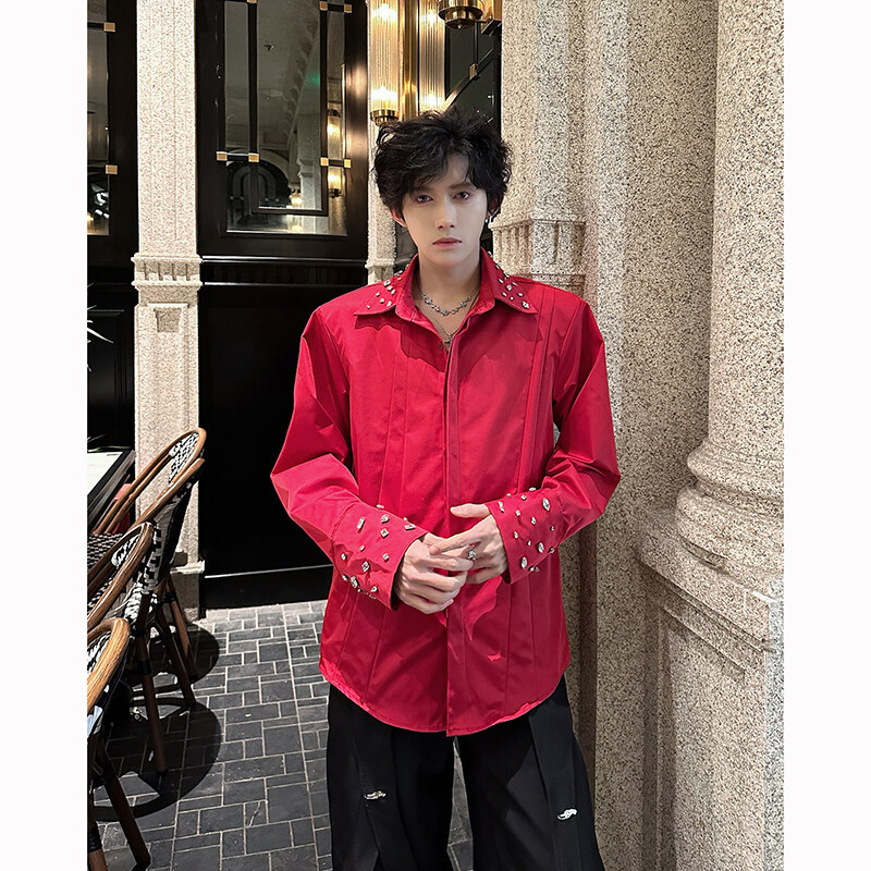 스팟상품! 25 디자인 남성용 라이트 럭셔리 라인스톤 긴팔 셔츠 CS120-5108스토어 가기
