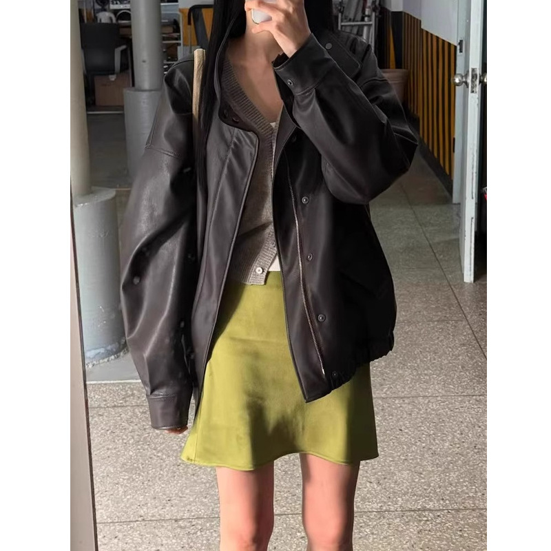 여성을위한 과일 녹색 새틴 광택 아세테이트 짧은 치마 여름 새로운 하이 웨이스트 바이어스 컷 a 라인 스커트 미니 피쉬 테일 스커트