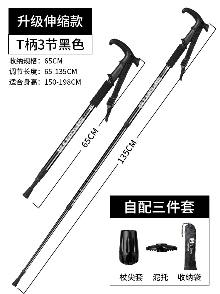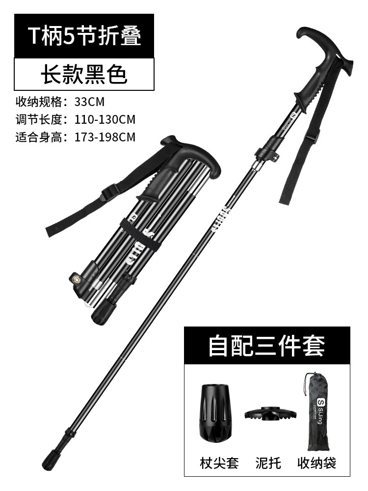 • [접이식] 키가 큰 사람에게 적합한 T자형 손잡이, 가볍고 긴 검정색(173-198CM에 적합)