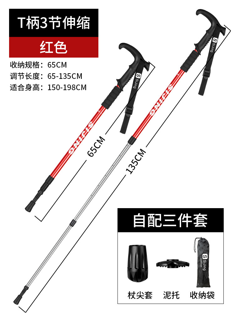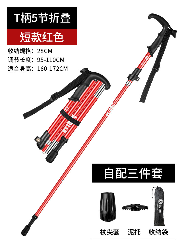 • [접이식] 키가 큰 사람에게 적합한 T자형 손잡이, 가볍고 긴 빨간색(173-198CM에 적합)