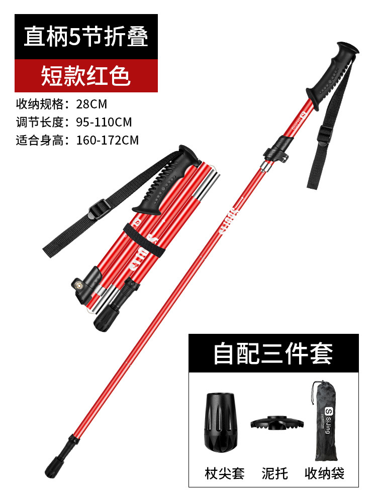 • [접이식] 직선형 손잡이, 가볍고 짧은 빨간색(160-172CM에 적합) 높이 사용
