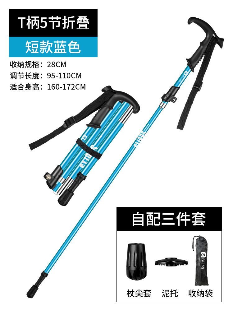 • [접이식] 키가 작은 사람에게 적합한 T자형 손잡이, 가볍고 짧은 파란색(160-172CM에 적합)