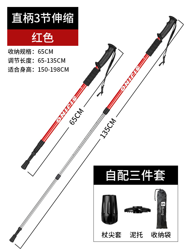• [접이식] 직선형 손잡이, 가볍고 긴 빨간색(173-198CM에 적합) 높이 사용
