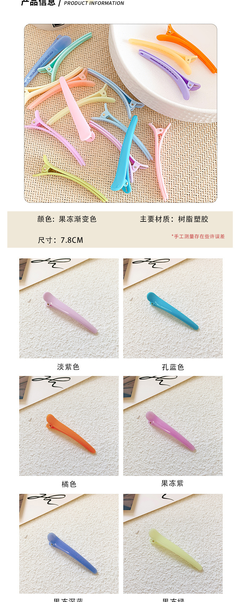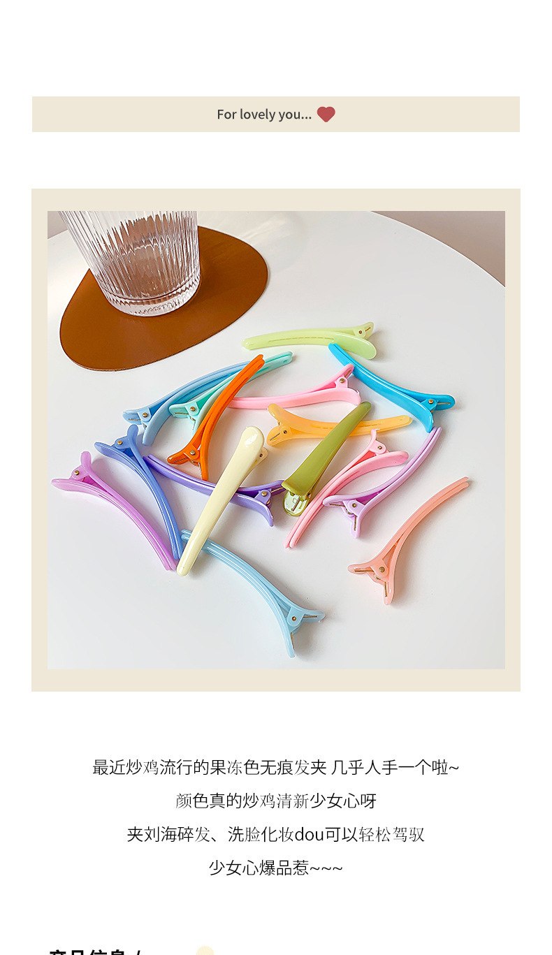 캔디 컬러의 무봉제 덕빌 클립, 헤어 클립, 헤어 클립, 앞머리 클립, 옆머리 플라스틱 덕빌 클립 헤어 액세서리