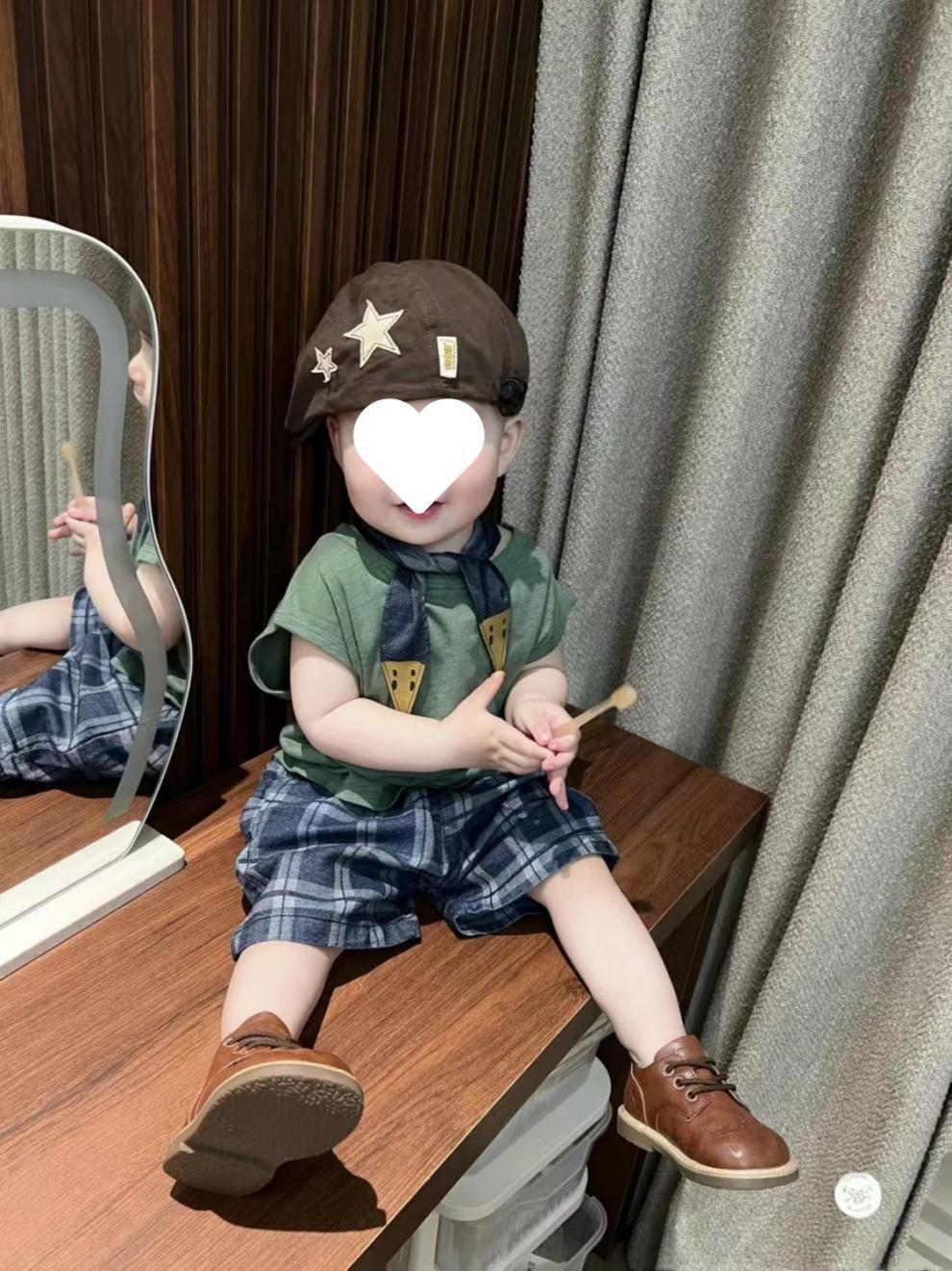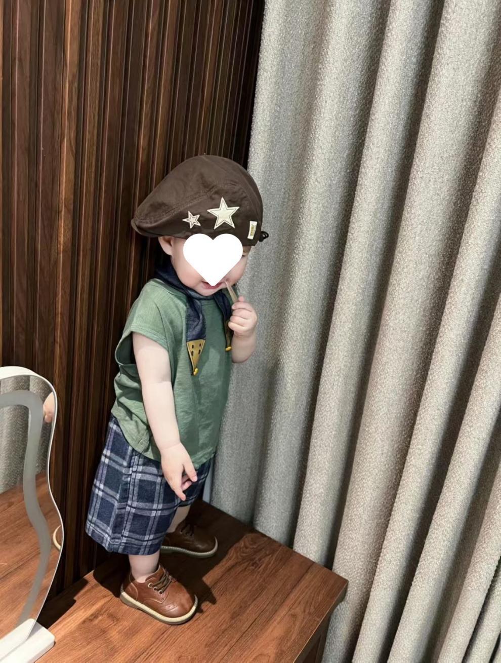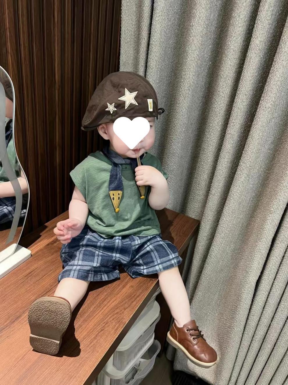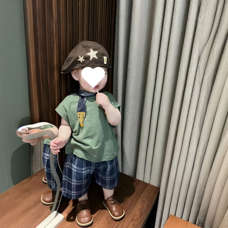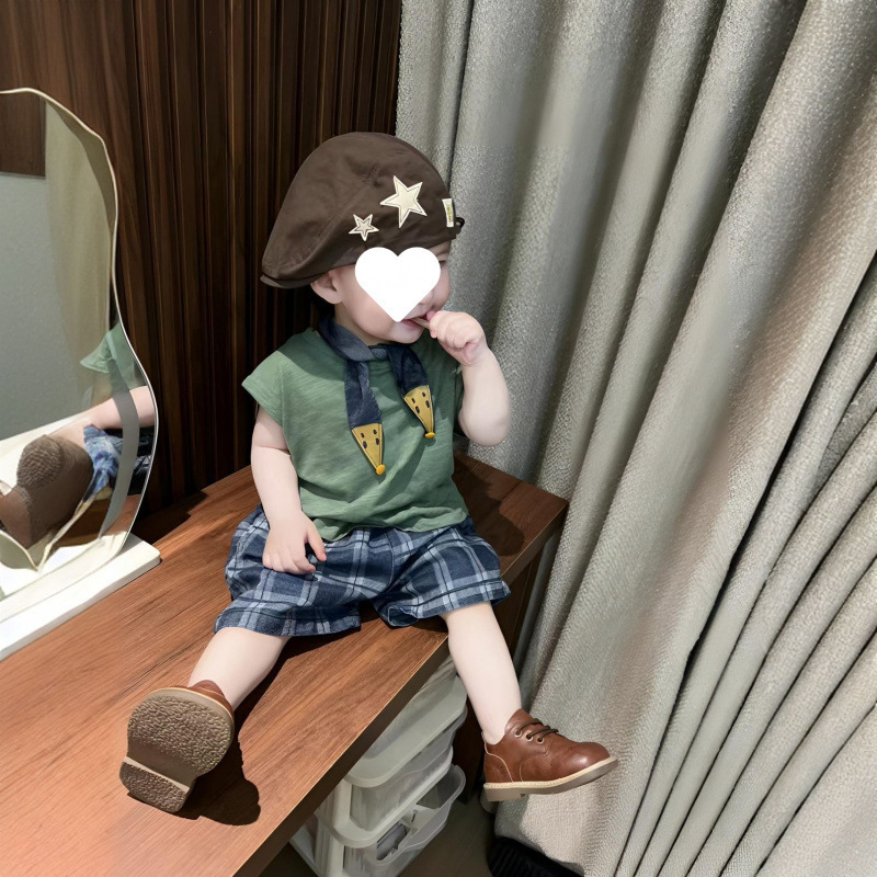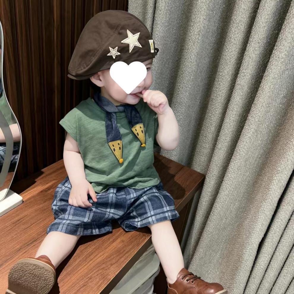 소년 베이비 슈트 여름 어린이 소녀 반바지 민소매 조끼 격자 무늬 반바지 투피스 세트 유행 0079A017