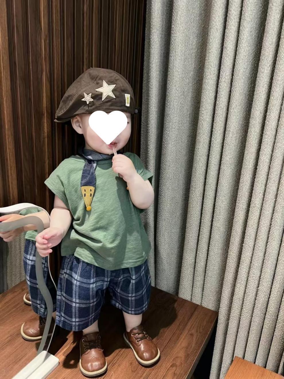소년 베이비 슈트 여름 어린이 소녀 반바지 민소매 조끼 격자 무늬 반바지 투피스 세트 유행 0079A017스토어 가기