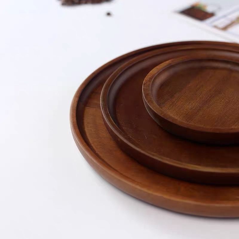 아카시아 나무 디너 플레이트 트레이 라운드 티 트레이 홈 코스터 단단한 나무 일본식 플레이트 ins 스낵 과일 플레이트 단단한 나무스토어 가기