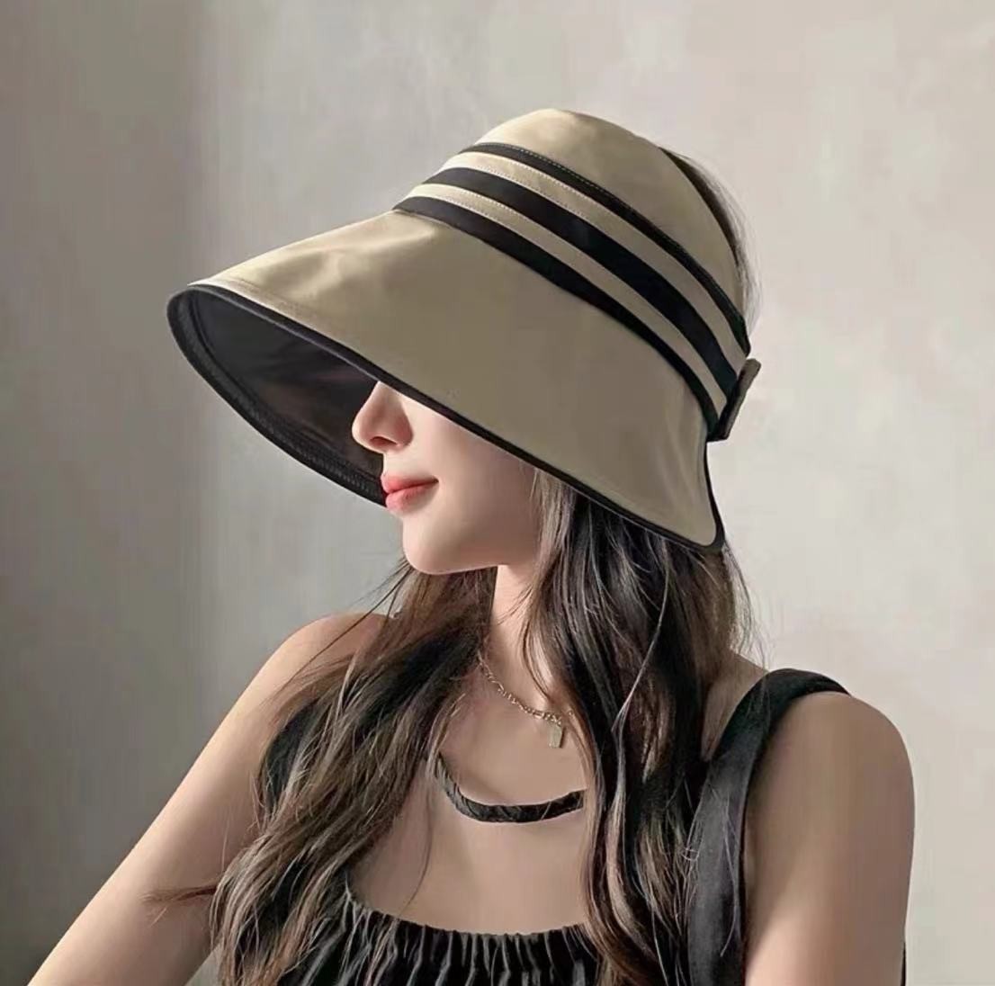 여성을 위한 새로운 줄무늬 모자, 패셔너블하고 트렌디하며 여름 야외 여행 스포츠 자외선 차단을 위한 간단한 빈 모자