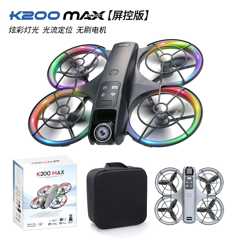 스크린 제어 광학 흐름 드론 HD 항공 사진 쿼드콥터 컬러 조명을 갖춘 국경 간 K200 브러시리스 원격 제어 항공기스토어 가기
