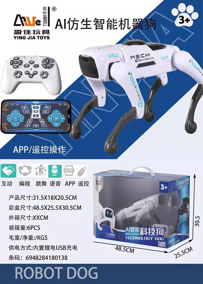 새로운 Yingjia AI 생체 공학 지능형 로봇 개는 원격 제어 및 앱으로 시뮬레이션된 첨단 애완 동물 장난감을 제어할 수 있습니다.스토어 가기