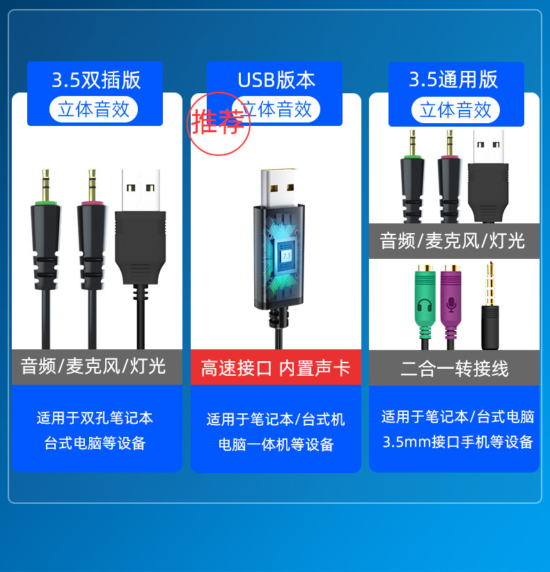 • 검정색 듀얼 플러그 + USB 발광 버전 + 단일 헤드 어댑터 케이블