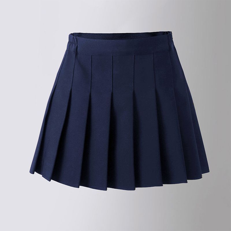 • 노출방지 안감이 있는 네이비 블루 플리츠 스커트