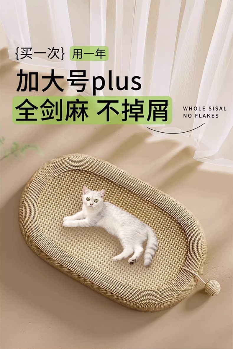 • [강화 사이잘 매트 + 사이잘 천] 타원형 고양이 긁는 기둥