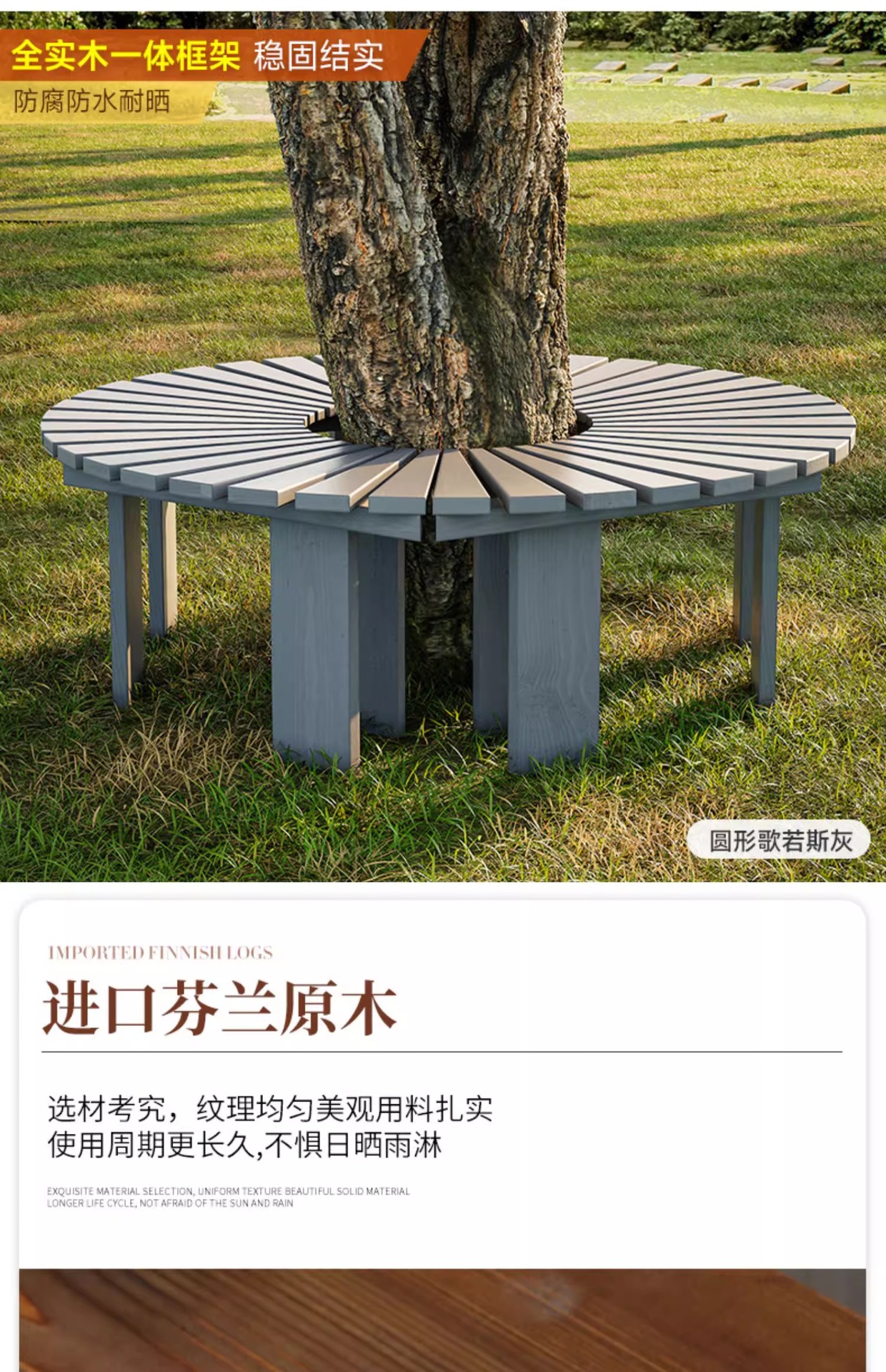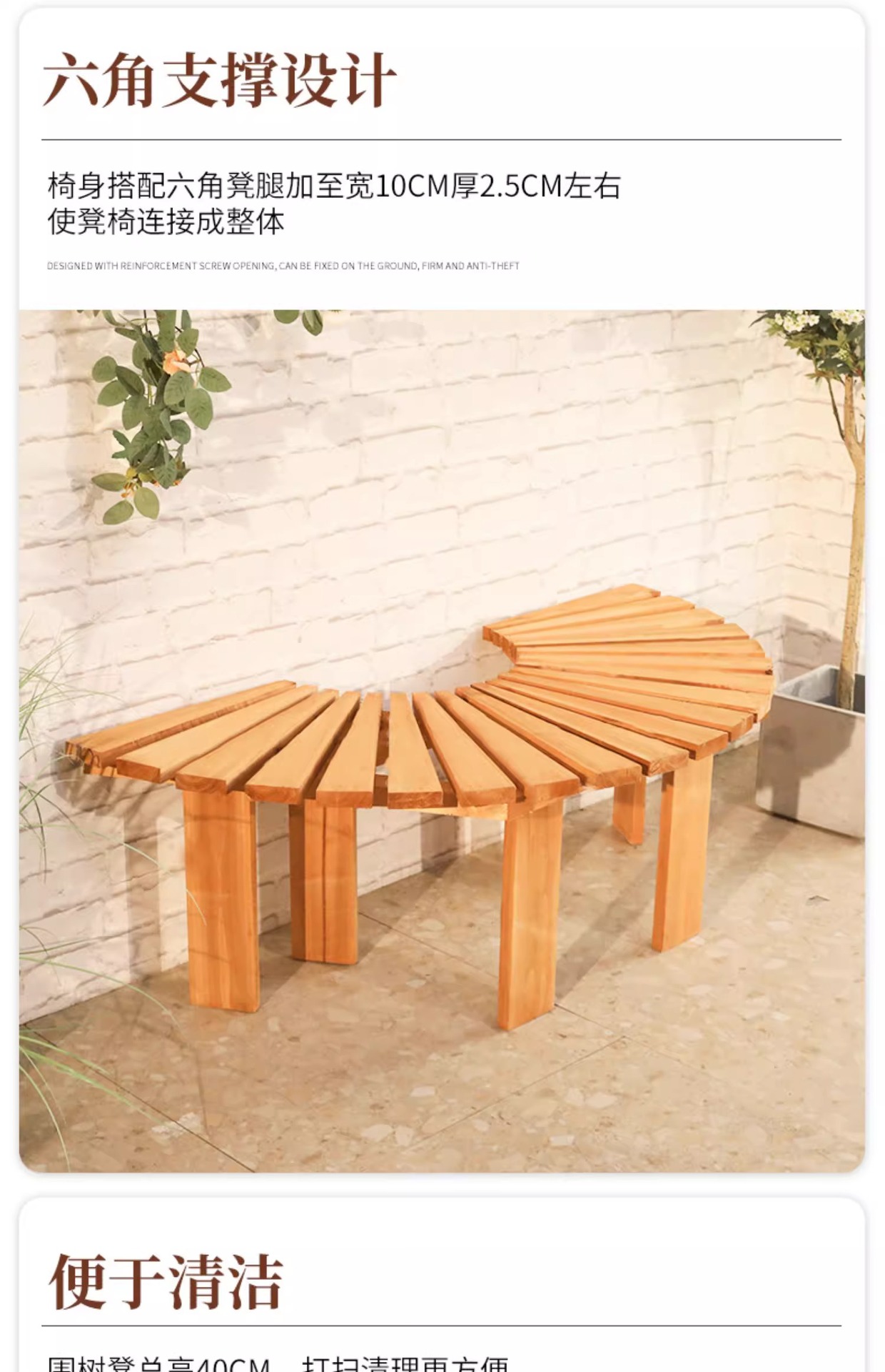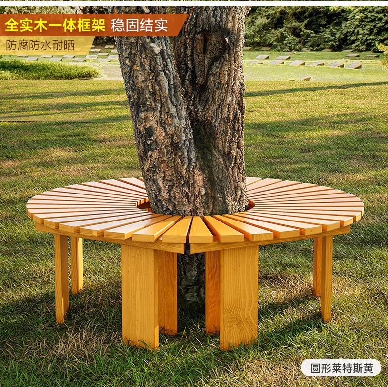 야외 나무 벤치, 부식 방지 목재 공원 의자, 나무 연못 야외 레저 좌석, 안뜰 의자, 정원 원형 긴 의자스토어 가기