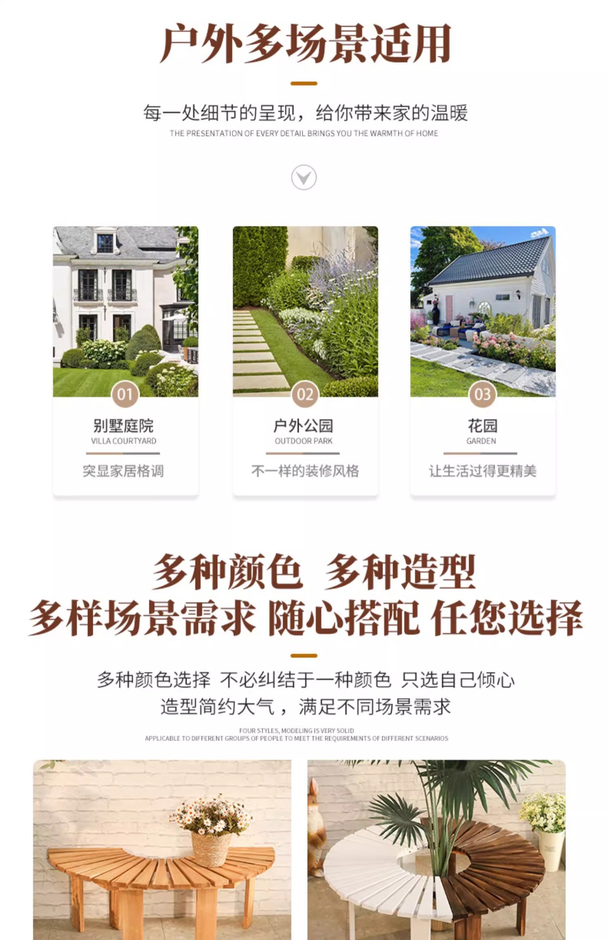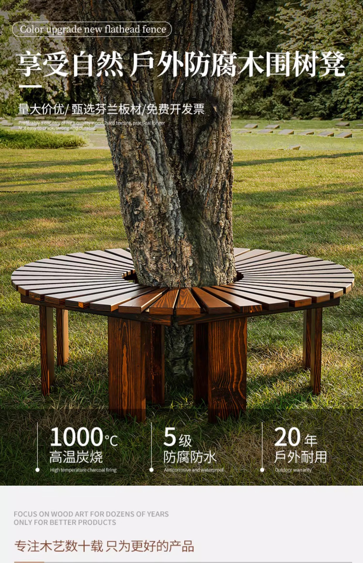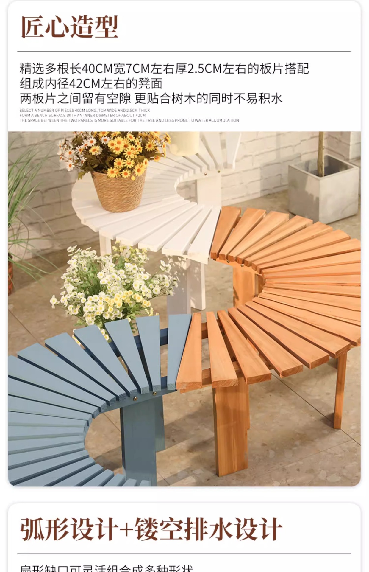 야외 나무 벤치, 부식 방지 목재 공원 의자, 나무 연못 야외 레저 좌석, 안뜰 의자, 정원 원형 긴 의자스토어 가기