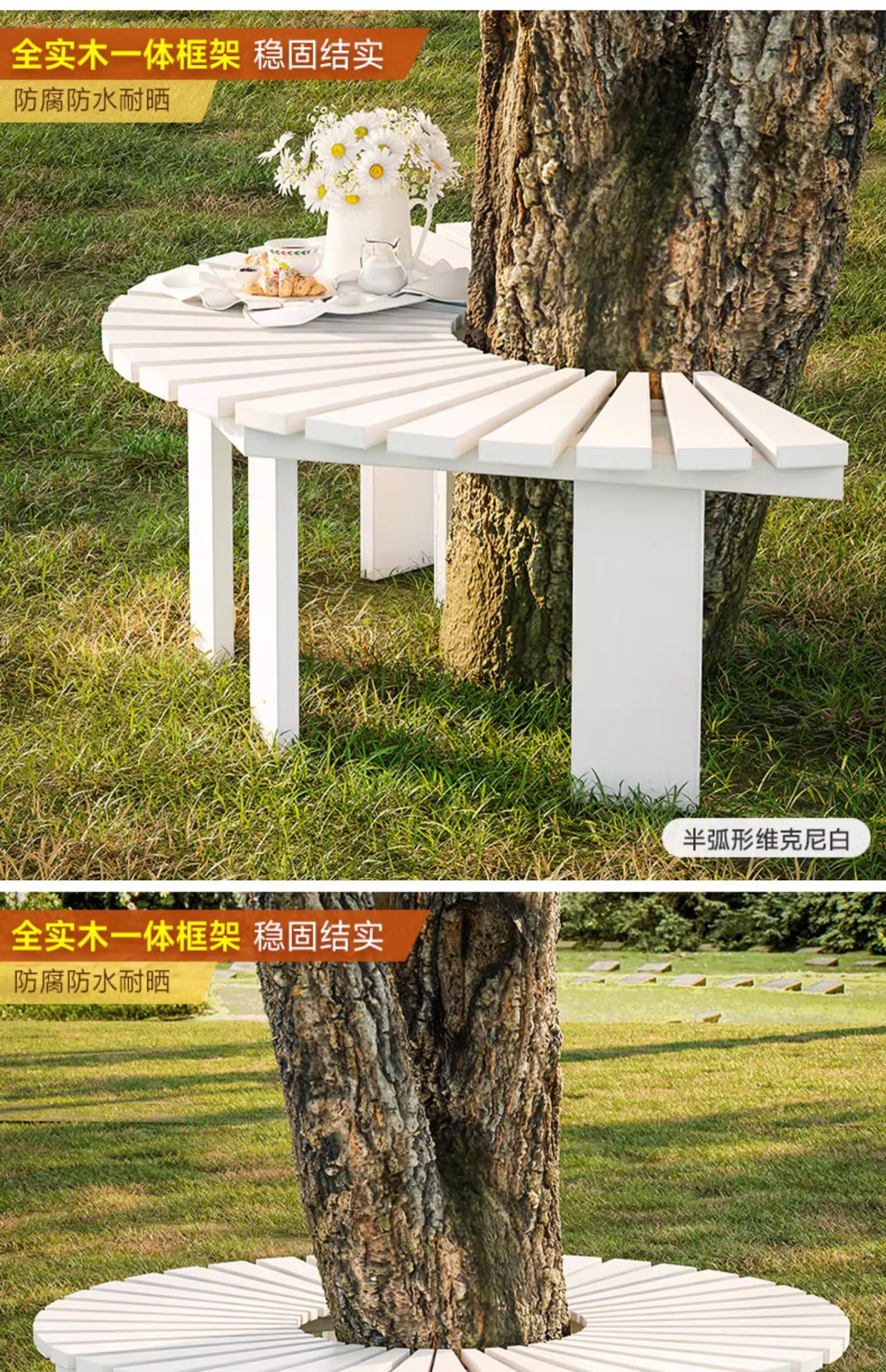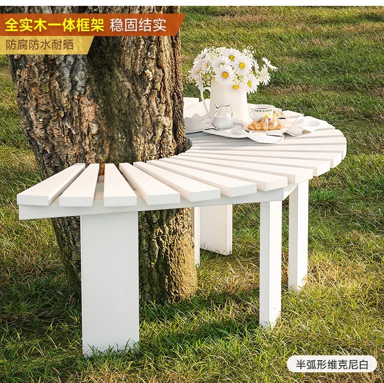 • 기본 핀란드 목재 나무 벤치(단일 반원형) Viken White [6중 부식 방지 공정 업그레이드, 부식 방지 효과 80% 증가]