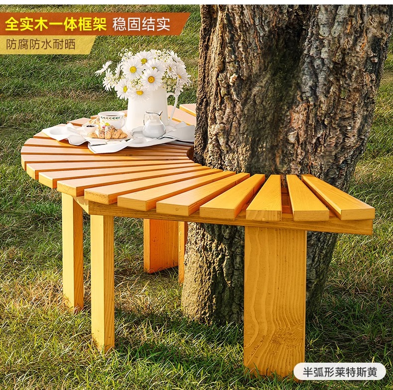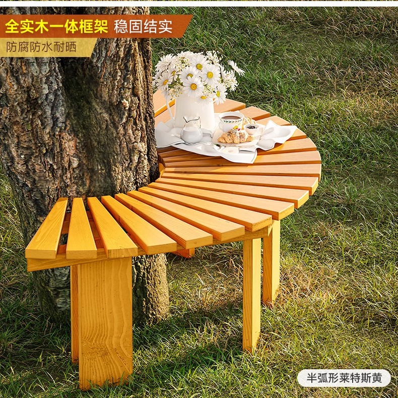• 기본 핀란드 목재 나무 벤치(단일 반원형) 레스터 옐로우 [6중 부식 방지 공정 업그레이드, 부식 방지 효과 80% 향상]