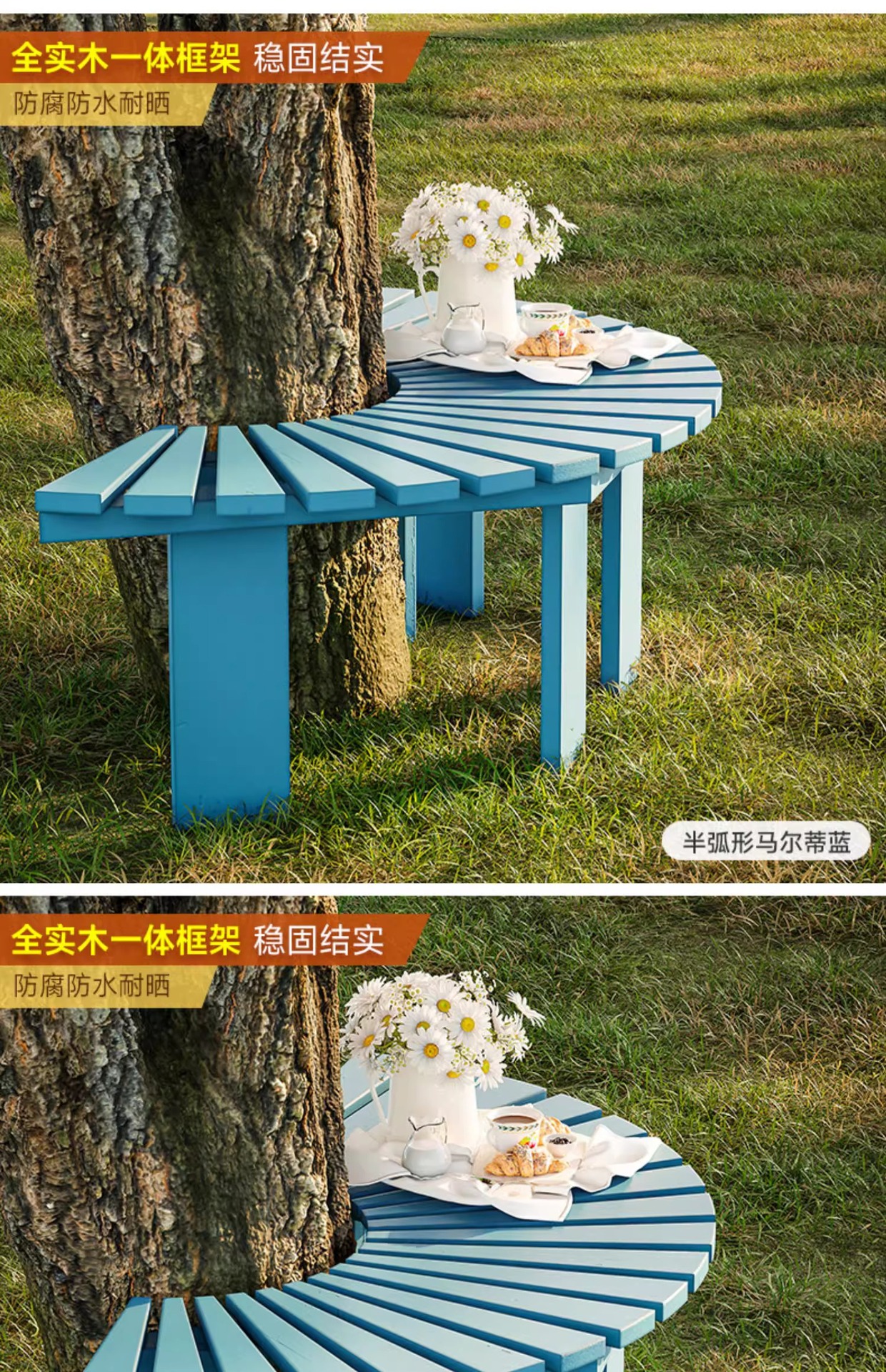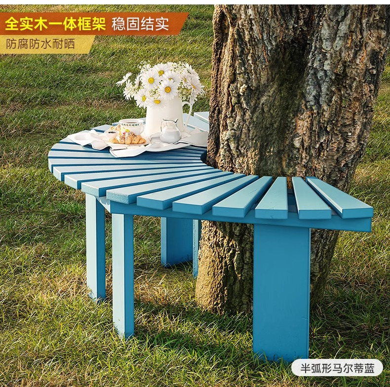 • 기본 핀란드 목재 나무 벤치(단일 반원형) 마르티 블루 [6중 부식 방지 공정 업그레이드, 부식 방지 효과 80% 향상]
