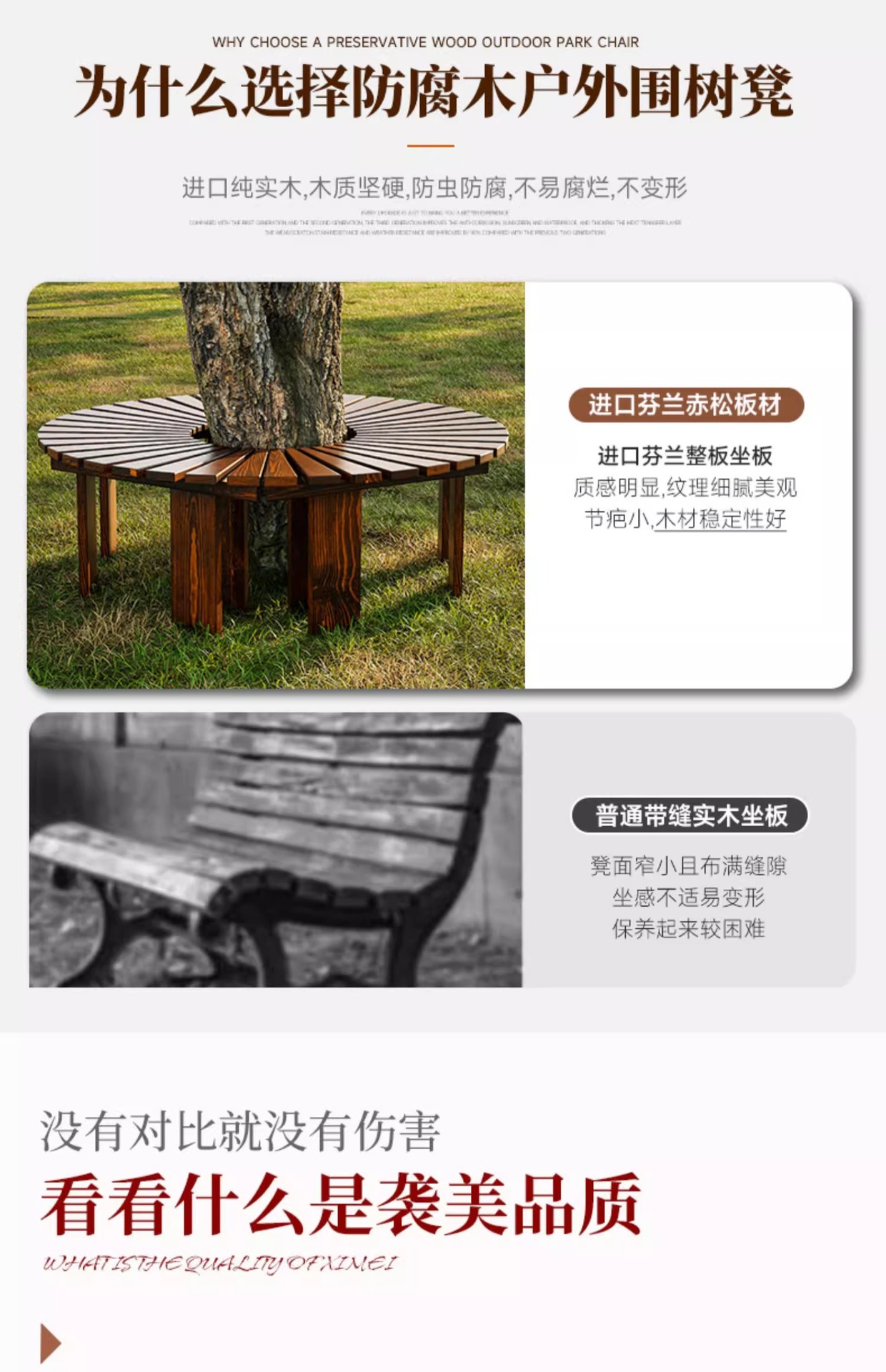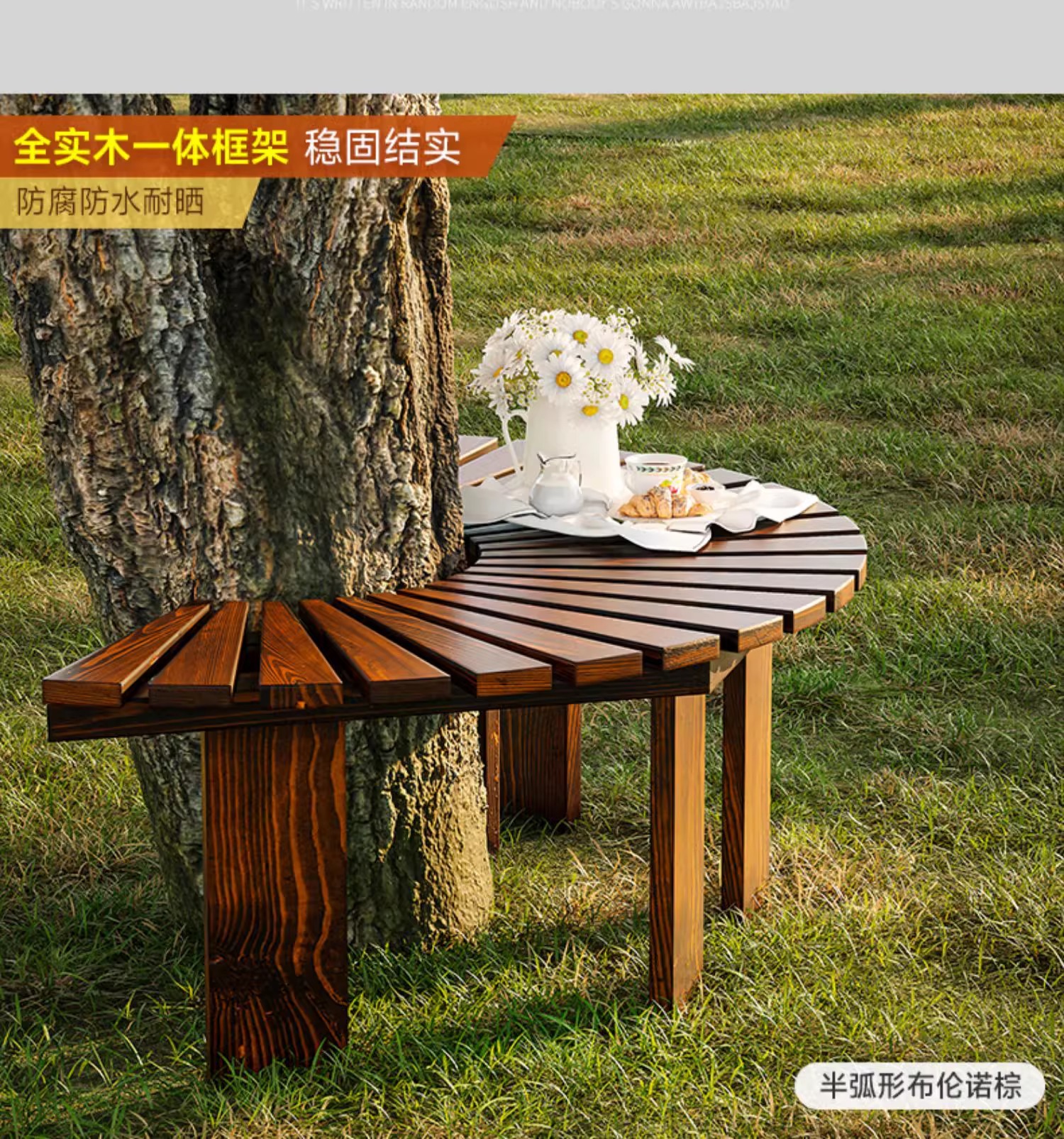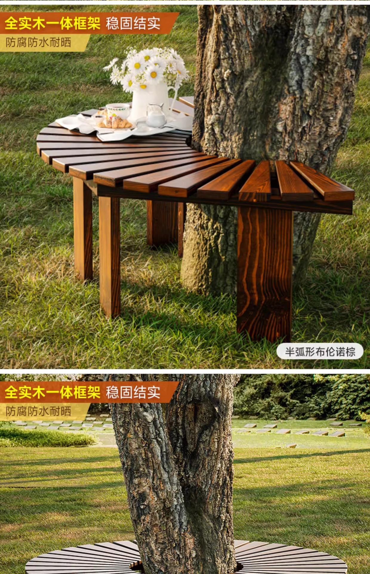 야외 나무 벤치, 부식 방지 목재 공원 의자, 나무 연못 야외 레저 좌석, 안뜰 의자, 정원 원형 긴 의자
