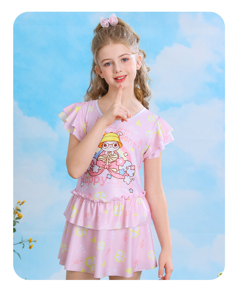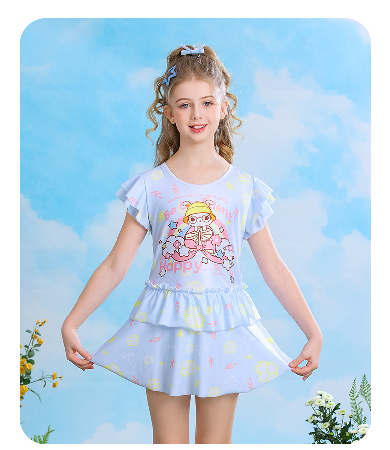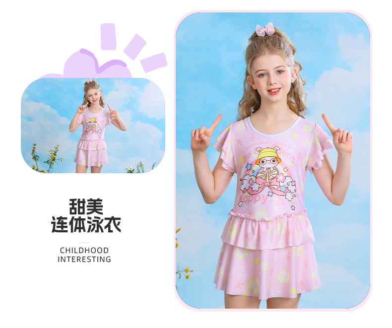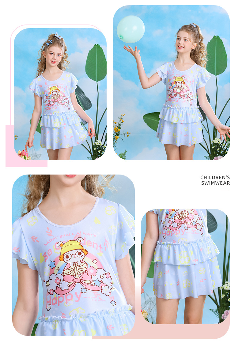 어린이 만화 패턴 원피스 수영복 안전 바지 귀여운 달콤한 공주 드레스 수영 속건성 슈트스토어 가기