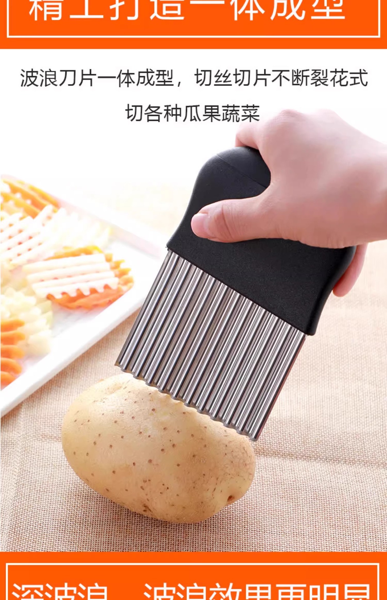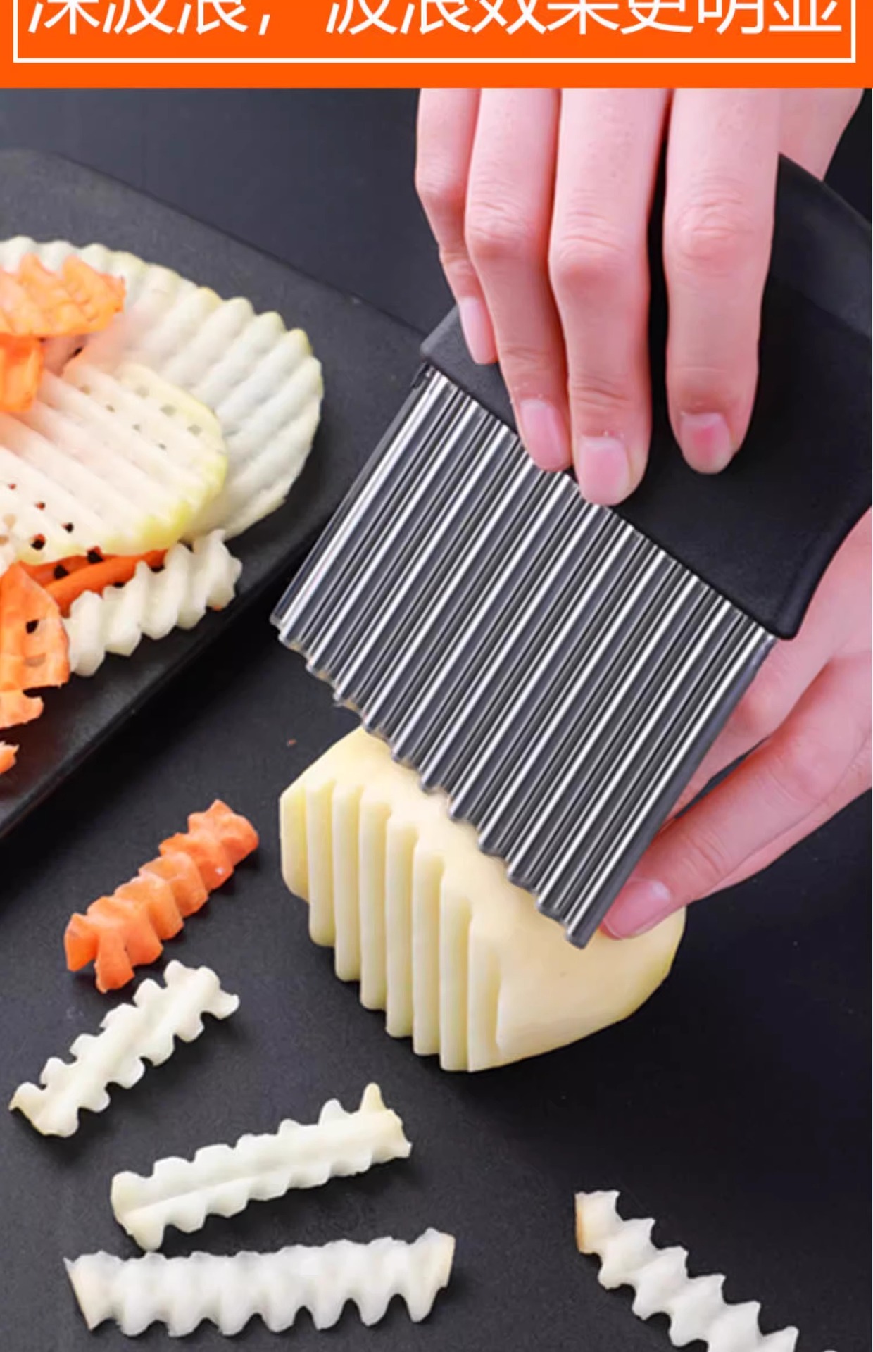 골판지 칼 스테인레스 스틸 늑대 치아 감자 칼 감자 절단 물결 모양의 칼 주방 가정용 야채 절단 멋진 슬라이서